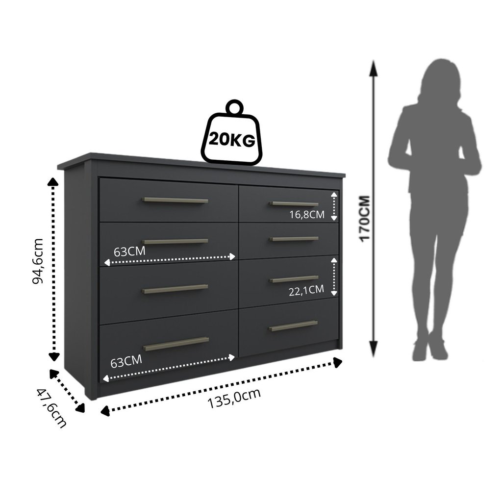 Cômoda para Quarto 8 Gavetas Elegance Black