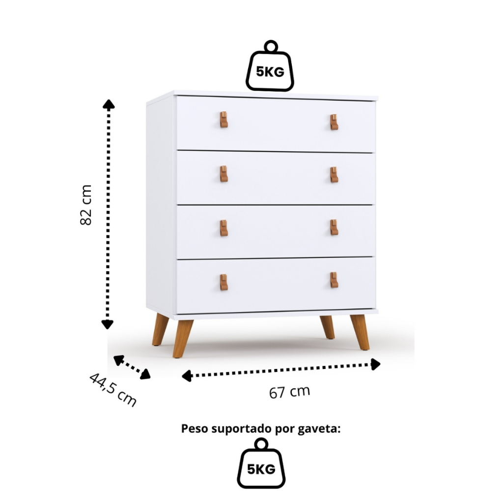 Cômoda Para Quarto Reforçada 4 Gavetas Espaçosas Luxo Encanto Frete Grátis