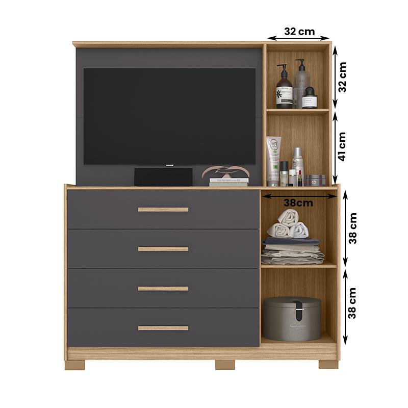 Cômoda Quarto Com Painel Para TV Ilhabela 4 Gavetas 2 Portas