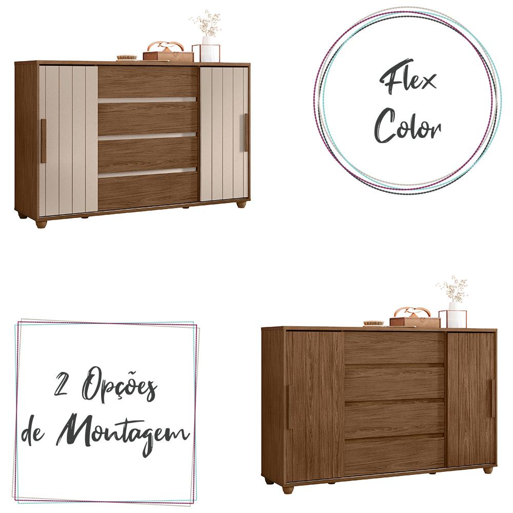 Cômoda Quarto Evidenza com 4 Gavetas e 2 Portas de Correr
