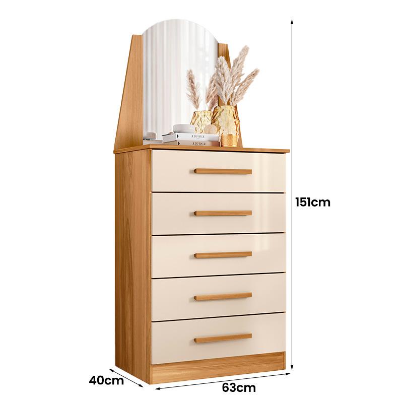 Cômoda Quarto Veneza com 5 Gavetas e Espelho