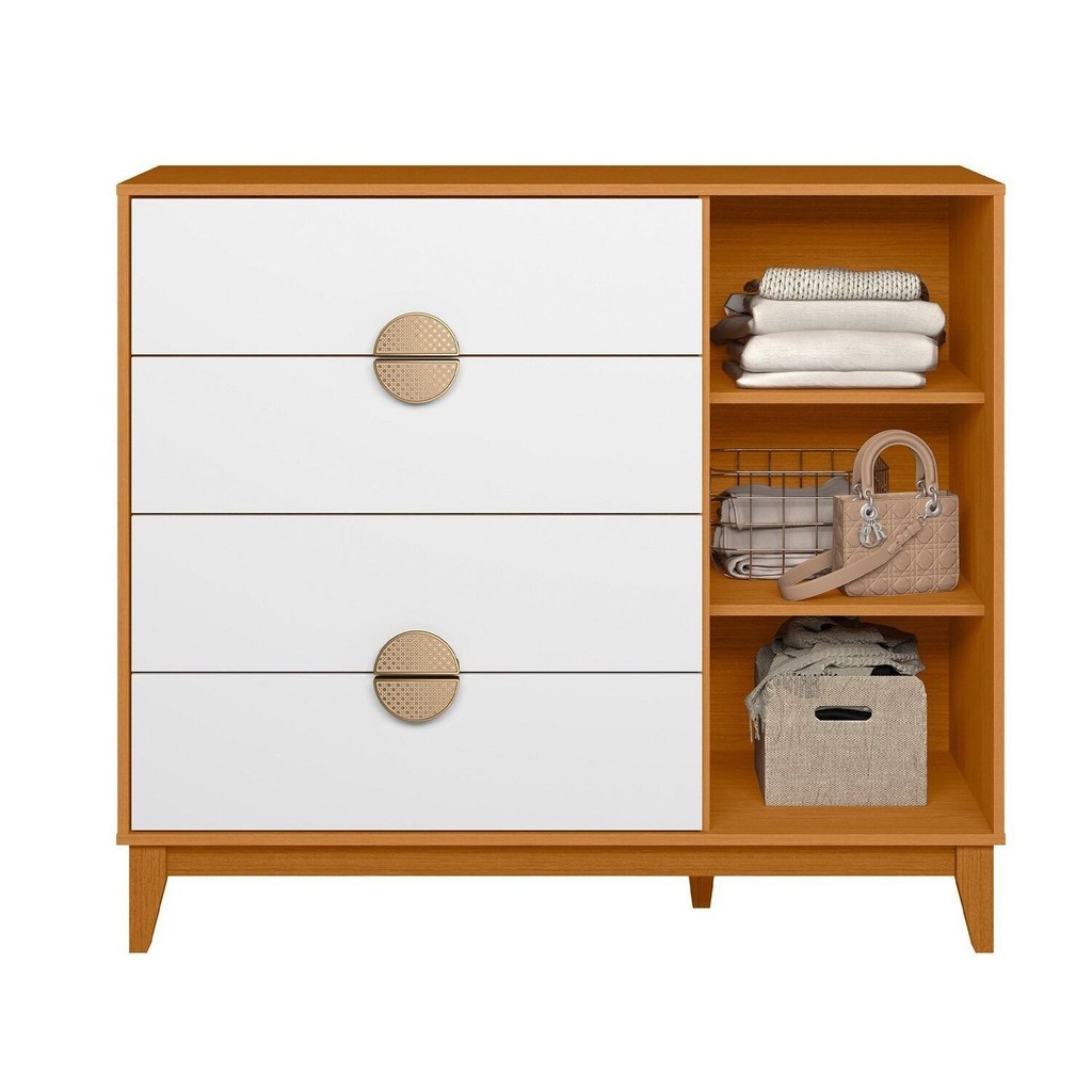 Renove seu ambiente com a Cômoda Sapateira Ipê! Com 1 porta e 4 gavetas, oferece espaço organizado e funcional. Os puxadores de ABS metalizado dourado e os apliques inspirados na palha indiana adicionam um toque de elegância. Sua porta com dobradiças slow motion garante fechamento suave, enquanto os pés em madeira conferem durabilidade e charme. Aproveite a praticidade e o estilo da Cômoda Sapateira Ipê para transformar seu espaço. Estilo: Moderno Peso (kg): 52.2 Garantia: 03 Meses Altura (cm): 101 Acabamento: Pintura UV Largura (cm): 120 Possui Pés: 5 Possui Nichos: Não Possui Portas: Sim Tipo de Porta: Bater Pés Reguláveis: Não Possui Gavetas: Sim Possui Rodízio: Não Suporta Até (kg): 43 Tipo de Cômoda: Infantil Possui Espelhos: Não Profundidade (cm): 47 Escala de Brilho: Fosco Gaveta com Chave: Não Material dos Pés: Madeira Serviço Montagem: 114259443 Material da Porta: MDF Material do Fundo: HDF Origem do Produto: Nacional Acabamento dos Pés: Pintura Ambiente Principal: Quarto Material da Gaveta: MDF Material Principal: MDF Possui Prateleiras: Sim Acabamento da Porta: Pintura UV Sapatas Niveladoras: Não Acabamento da Gaveta: Pintura UV Quantidade de Portas: 1 Material da Prateleira: MDF Peso Máximo por Gaveta: 5 Acabamento da Prateleira: Pintura UV Tipo de Puxador da Porta: Externo Escala de Brilho da Porta: Fosco Tipo de Puxador da Gaveta: Externo Escala de Brilho da Gaveta: Fosco Peso Máximo por Prateleira: 5 Tipo de Corrediça da Gaveta: Metálica Telescópica Material do Puxador da Porta: ABS Material do Puxador da Gaveta: ABS Escala de Brilho da Prateleira: Fosco Tipo de Dobradiça/Corrediça da Porta: Metálica Marca: Albatroz Móveis Cor Interna: Cinamomo Cor do Produto: Cinamomo/Branco Itens Inclusos: 1 Cômoda + Manual de Montagem + Kit Ferragens Cor Predominante: Branco Linha ou Coleção: Albatroz Cor da Porta: Bege Quantidade de Prateleiras: 02 Prateleiras Quantidade de Gavetas: 04 Gavetas