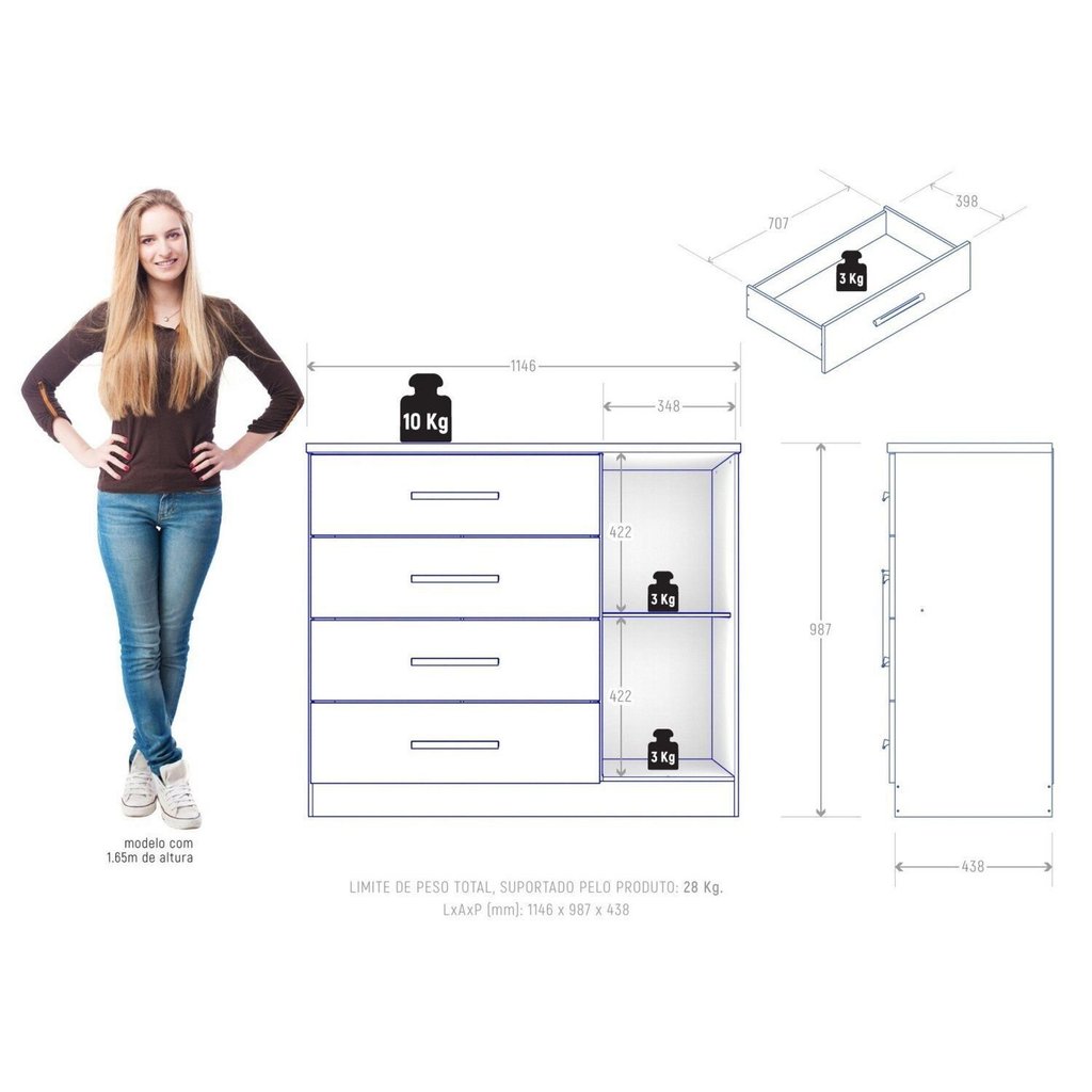 Cômoda Sapateira Genova Plus 1 Porta 4 Gavetas