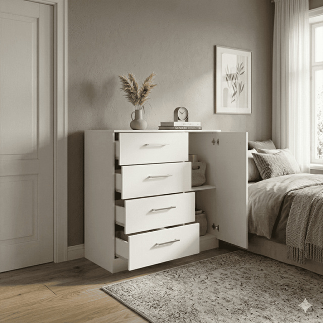 Cômoda Sapateira Grande Branca com Corrediças Metálicas e Puxadores Modernos Organizador de Roupas e Calçados Quarto
