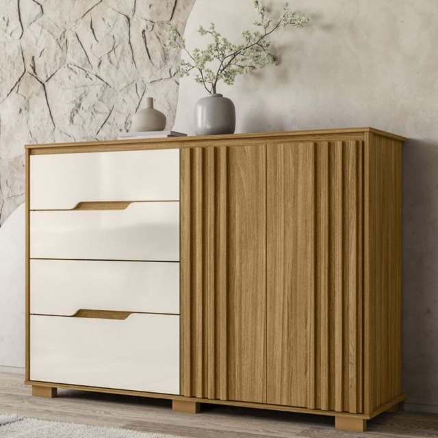 Cômoda Texas Com 4 Gavetas e 2 Portas Ripado Moval