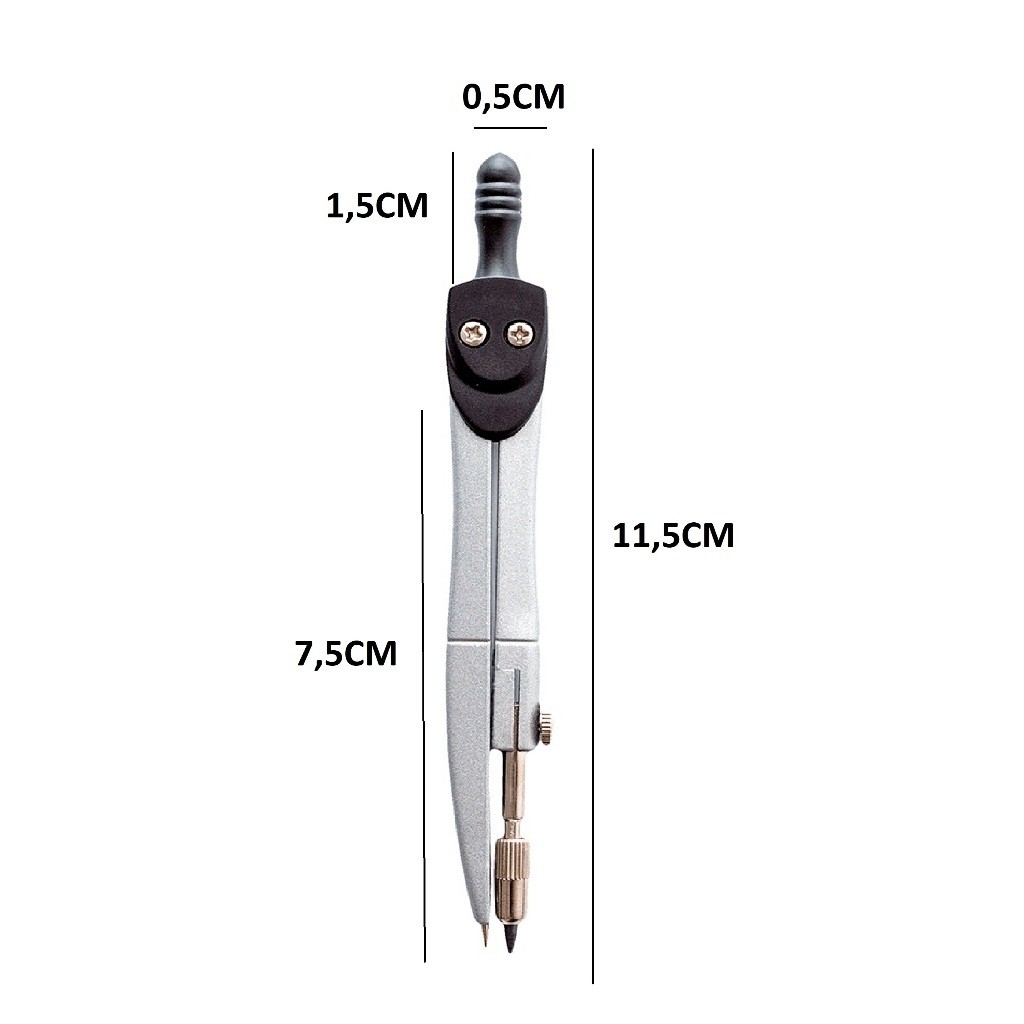Compasso Metálico LeoLeo Diversas Cores 11,5cm Altura Escolar Papelaria Resina Temoplásticas Metal E Gráfite
