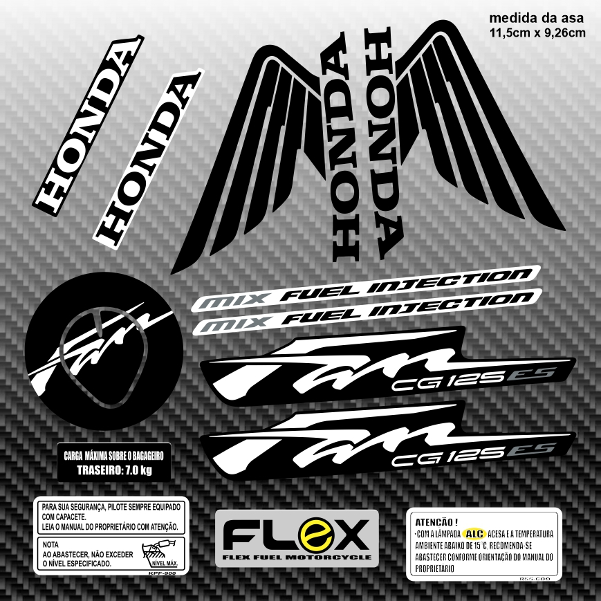 Compativel Kit adesivos moto CG FAN 125 / FAN 150 preto e branco / kit completo envernizado / asa com e sem borda preta