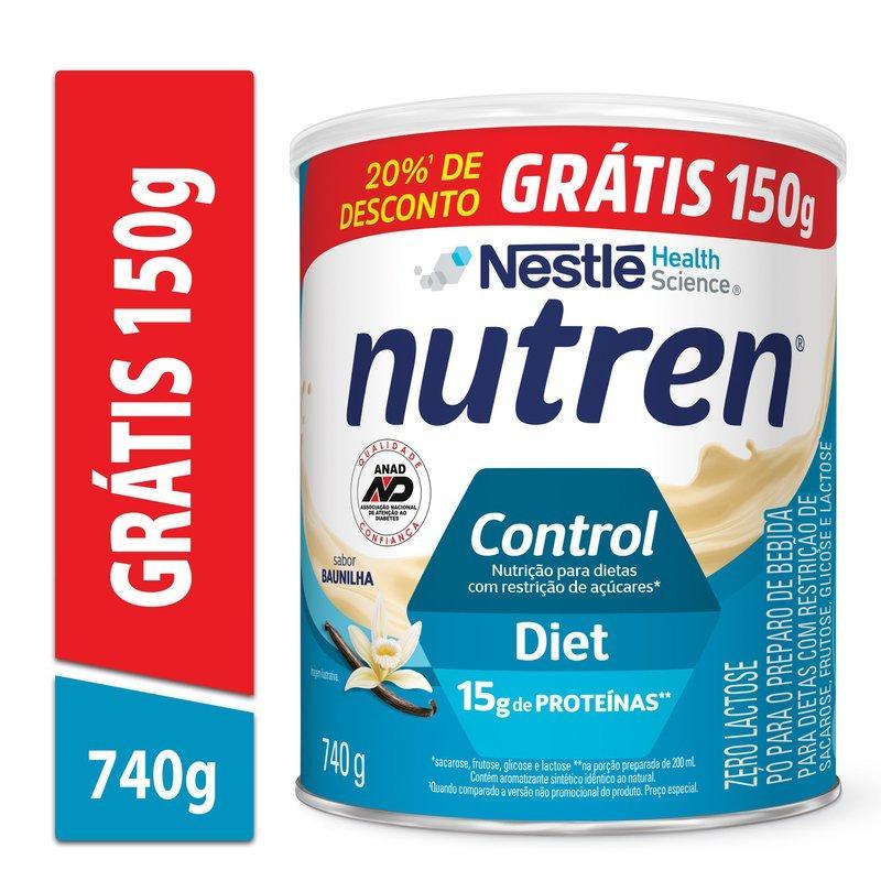 Nutren Control Baunilha 740g - Complemento Alimentar Pó para o preparo de bebidas diet, com isomaltulose, um carboidrato de lenta absorção com baixo índice glicêmico, rico em proteínas 15g/porção, com caseinato e whey protein e fonte de fibras, ômega 3 e vitaminas e minerais. Isento de sacarose, frutose, glicose e lactose. Na porção preparada de 200mL. Este não é um alimento baixo ou reduzido em gorduras saturadas. Agora em embalagem econômica de 740g com 20% de desconto: são 150g grátis para você aproveitar mais saúde, sabor e nutrição! Benefícios: - Contém isomaltulose, um carboidrato de lenta absorção com baixo índice glicêmico. - Diet. - Rico em proteínas (15g por porção de 200 ml). - Fonte de fibras, ômega 3, vitaminas e minerais. - Isento de glúten e lactose. Modo de Preparo: Adicione 5 colheres de sopa (42g) do produto em 180ml de água e misture bem. (Consumir preferencialmente sob orientação de nutricionista ou médico. Não é adequado para uso como única fonte de nutrição. Para adultos.) Modo de Conservação: Iniciado o uso do produto, recomenda-se o consumo em até 30 dias. Consumir imediatamente após o preparo. Manter a lata sempre bem fechada em local seco, fresco e inodoro. Durante o transporte, este produto pode se compactar. No entanto, seu volume e conteúdo correspondem ao peso líquido indicado no rótulo. Perguntas frequentes 1. O Nutren Control substitui refeições? Não, ele não é um substituto de refeições completas, mas sim um complemento alimentar. Deve ser usado como parte de uma dieta balanceada. 2. Grávidas e crianças podem consumir? Sim, mas apenas sob orientação médica ou de um nutricionista, especialmente se houver condições específicas, como diabetes gestacional. 3. Possui glúten ou lactose? O Nutren Control não contém glúten, mas contém lactose. Portanto, não é indicado para pessoas com intolerância à lactose severa. 4. Pode ser usado como parte de uma dieta para perda de peso? Sim, desde que integrado a um plano alimentar controlado, devido ao baixo índice glicêmico e perfil nutricional balanceado. No entanto, deve ser acompanhado por um profissional de saúde. Nutren Control Baunilha, o complemento alimentar ideal para auxiliar no controle glicêmico e na nutrição diária. Rico em proteínas, fibras e baixo índice glicêmico.