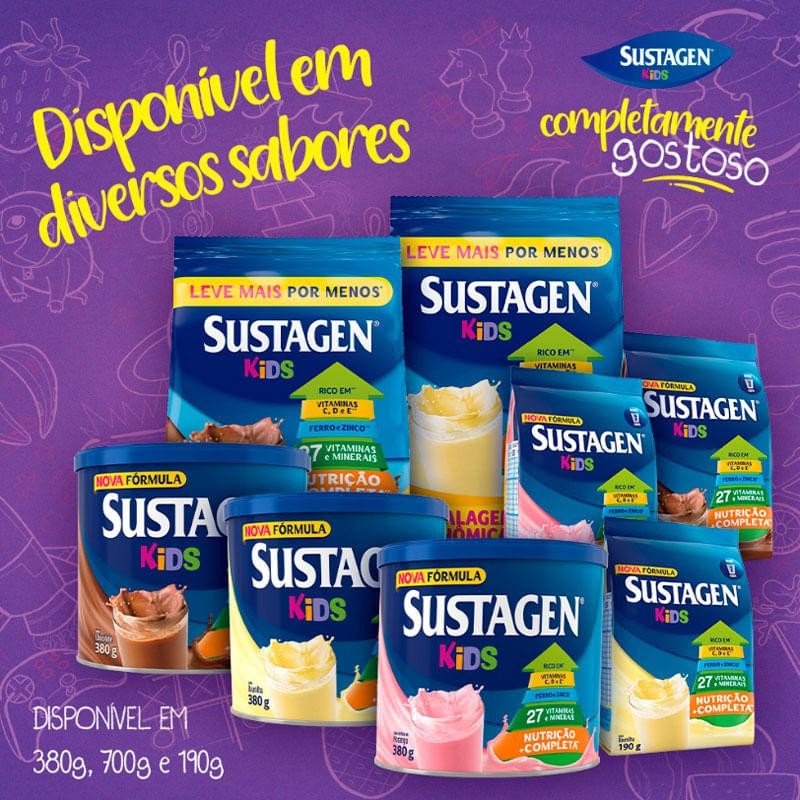 Uma alimentação saudável e balanceada é fundamental para o bom funcionamento do corpo e crescimento saudável. É por isso que Sustagen® Kids é o complemento alimentar que te ajuda a oferecer uma nutrição mais completa*. Sua nova fórmula oferece 27 vitaminas e minerais presentes em todos os grupos de alimentos da pirâmide alimentar, que ajudam a complementar a nutrição do seu filho. *Este produto não substitui a alimentação saudável e balanceada. Seu consumo deve estar associado a uma dieta equilibrada e hábitos de vida saudáveis. Consulte sempre um médico ou nutricionista. NÃO CONTÉM GLÚTEN