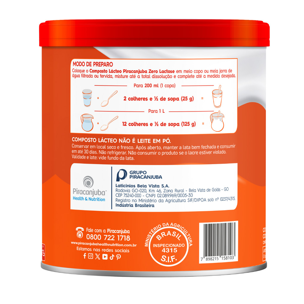 Composto Lacteo Zero Lactose 700g Lata Piracanjuba