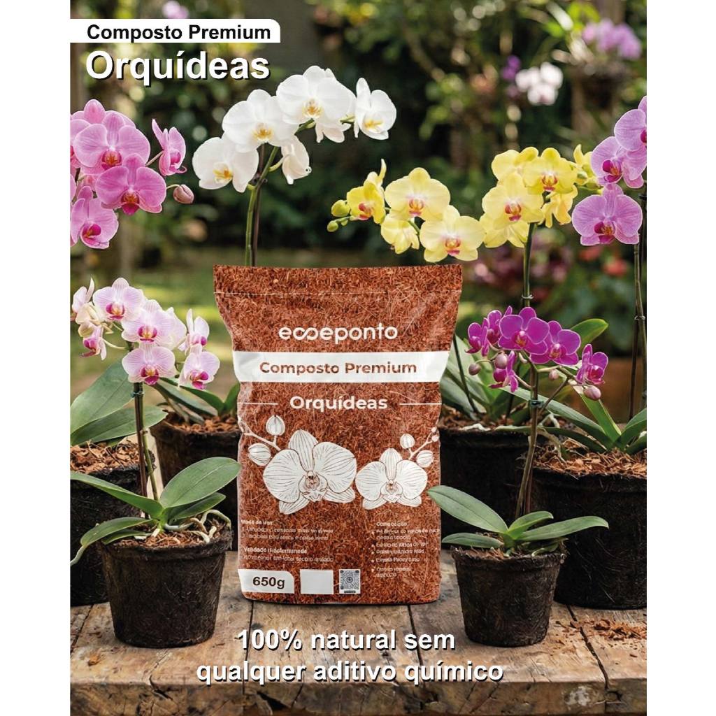 O composto para orquídeas é um composto orgânico essencial para o desenvolvimento e fixação das plantas, auxiliando na retenção de água e nutrientes. Sua composição possui: *Pó fibroso da casa do coco (seco e lavado) *Farelo de Casca de Siri *Remineralizador MB4 *Extrato Pirolenhoso *Carvão vegetal aditivado Armazene em local seco e arejado.