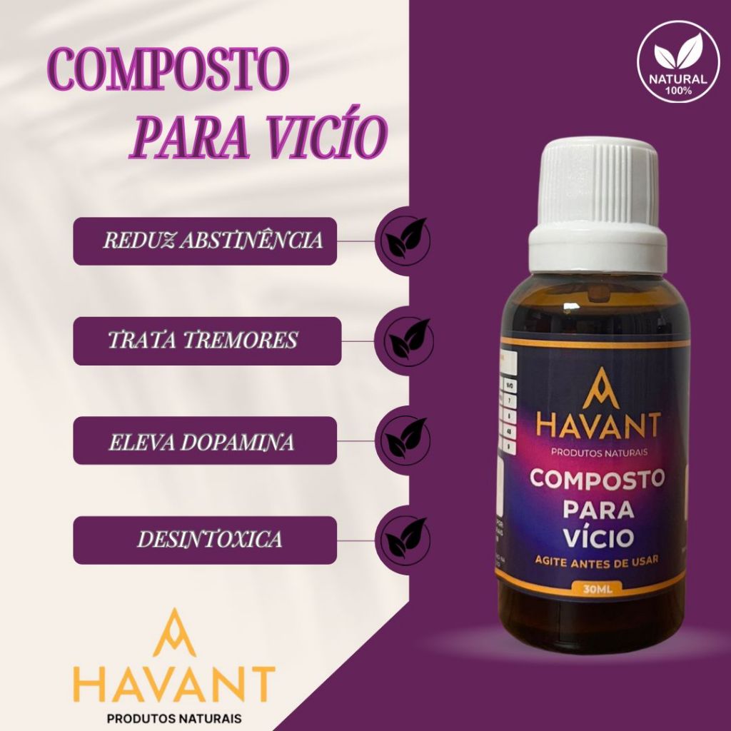 | COMPOSTO ANTI-VÍCIO - 100% NATURAL -30ML - HAVANT | R$ 29,90 | — | 4.8/5 | 19 |