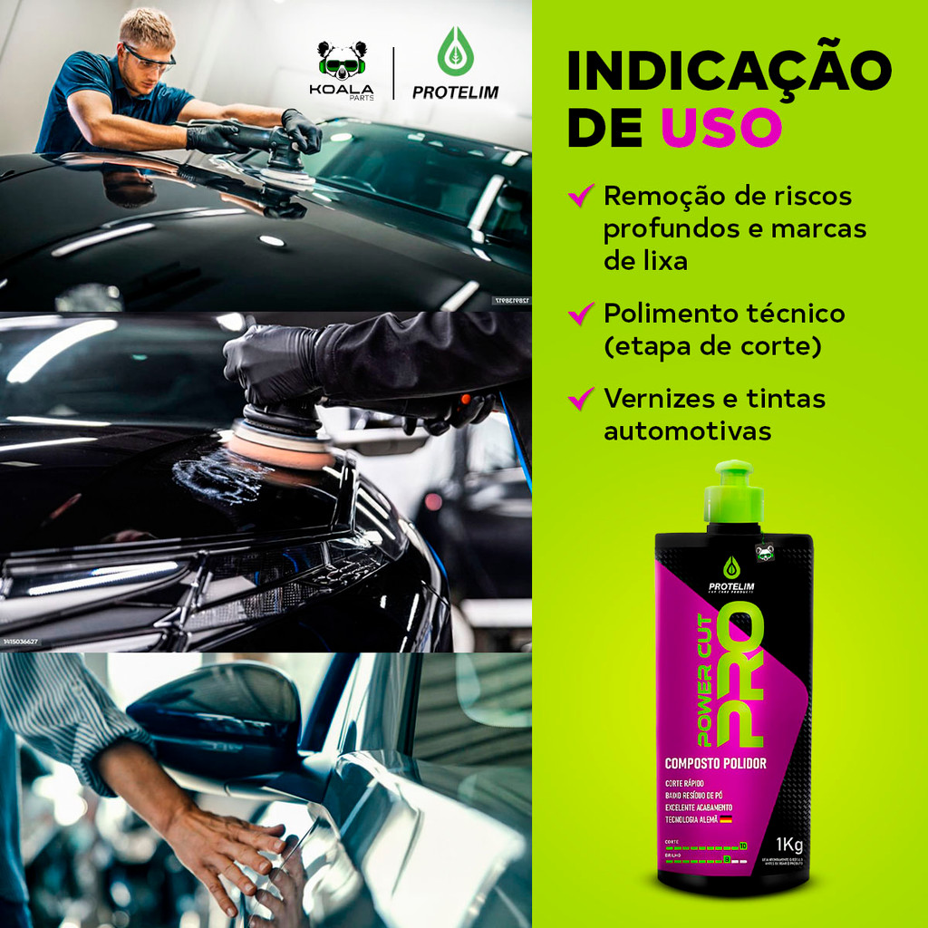 Composto Polidor Power Cut Pro 1kg Protelim Corte bruto, acabamento fino. O Power Cut Pro é o composto polidor à base de água da Protelim, com alto poder de corte para qualquer superfície de tinta ou verniz. Com tecnologia alemã e abrasivos inteligentes, ele corta rápido até os riscos mais profundos, entrega um acabamento liso, brilho intenso e baixo resíduo de pó. Alta lubrificação, aplicação suave e zero desperdício. - Corte rápido - Remove riscos profundos e marcas de lixa (grãos 1200 a 2000) - Baixo resíduo de pó - Para todo tipo de verniz e pintura - Excelente acabamento com brilho intenso - Tecnologia alemã e abrasivos de última geração >> Não mancha borracha ou plástico As partículas abrasivas se fragmentam durante o uso, garantindo um corte limpo, rápido e controlado. Aplicado com boina de lã ou espuma agressiva, ele elimina imperfeições e já deixa a superfície pronta para o próximo passo, poupando tempo e esforço. Aplicação: - Vernizes e tintas automotivas - Remoção de riscos profundos e marcas de lixa - Polimento técnico (etapa de corte) A Protelim é uma marca nacional que atua no ramo da estética automotiva desde 1996, desenvolvendo produtos especializados e de alta qualidade. Feito por quem ama e vive a cultura automotiva, com comprometimento socioambiental e segurança. Protelim — a proteção que brilha. Modo de uso: 1. Agite antes de usar. 2. Garanta superfície limpa, seca e fria. 3. Aplique na boina de lã ou espuma agressiva em pequenas quantidades. 4. Trabalhe em áreas de 40x40 cm com politriz rotativa ou orbital entre 1400-1800 RPM, pressão média e movimentos curtos. 5. Finalize com Protelim IPA e flanela de microfibra para inspeção. 6. Repita se precisar. * Não aplique sob sol ou superfície aquecida. ** Use EPIs durante a aplicação. Enviamos bem embalado, super rápido e com garantia de originalidade. Garanta o seu e confira os outros produtos da nossa Loja Koala Parts. Especificações Técnicas: Produto: Power Cut Pro Marca: Protelim Tipo: Composto Polidor Aplicação: Polimento técnico / Etapa de corte Volume: 1kg Cor: Branco Odor: Característico Aspecto: Pastoso Diluição: Pronto uso pH: 9,0 a 10,0 Tecnologia: Alemã Resíduo: Baixo Indicação: Para todos os tipos de verniz Conteúdo da embalagem: 1 Composto Polidor Power Cut Pro 1kg Protelim