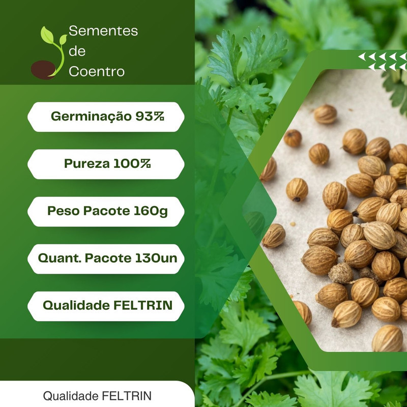 Sementes de Coentro Verdão - 1,6g | Aproximadamente 130 sementes Você Vai Receber 4 Pacotes do Mais Alto Padrão em Sementes: Pureza, Vigor e Resultado Garantido Cultive em casa o delicioso e aromático Coentro Verdão, uma variedade altamente produtiva, com folhas largas, verde-escuras, muito cheirosas e saborosas. Ideal para quem busca uma horta prática, seja em pequenos espaços, vasos, jardineiras ou diretamente no solo. O Coentro Verdão é conhecido pelo seu rápido desenvolvimento, aroma intenso e excelente rendimento. Uma planta que não pode faltar na sua cozinha e na sua horta. Qualidade Garantida As sementes são de altíssima qualidade, produzidas pela Feltrin, uma das marcas mais reconhecidas no mercado de sementes. Elas passam por rigorosos processos de seleção e controle de qualidade, garantindo alta taxa de germinação, pureza e vigor. Isso significa que você recebe sementes com garantia de procedência, qualidade e performance superior. Benefícios do Coentro Verdão Crescimento rápido e alta produtividade Folhas grandes, verdes e muito aromáticas Ideal para colheitas rápidas e sucessivas Perfeito para temperar carnes, saladas, molhos, peixes e diversas receitas Fácil cultivo em hortas urbanas, canteiros e vasos Sementes de excelente qualidade, com garantia de procedência Feltrin Época de Plantio Região Sul: Agosto a Março Região Sudeste: Todo o ano Região Centro-Oeste: Todo o ano Região Nordeste: Todo o ano Região Norte: Todo o ano O Coentro Verdão se desenvolve melhor em climas amenos a quentes e é muito adaptável, proporcionando ótimos resultados em praticamente todo o Brasil. Ficha Técnica Produto: Sementes de Coentro Verdão (Green Coriander) Quantidade: Envelope com 1,6g Rendimento: Aproximadamente 130 sementes por envelope Ciclo: Rápido – aproximadamente 30 a 40 dias após o plantio para início da colheita Exposição: Sol pleno Plantio: Direto no local definitivo, em canteiros, vasos ou jardineiras Espaçamento: 20 cm entre linhas e 5 cm entre plantas Germinação: De 7 a 14 dias Altura Média: 40 a 60 cm Regas: Frequentes, mantendo o solo úmido, porém sem encharcar Modo de Plantio Prepare a terra, deixando-a solta, rica em matéria orgânica e bem drenada. Faça sulcos de aproximadamente 1 cm de profundidade. Distribua as sementes, cubra levemente com terra e regue. Mantenha o solo sempre úmido até a germinação. Após 7 a 14 dias surgirão as primeiras mudas. Realize o desbaste deixando as plantas mais vigorosas, conforme o espaçamento recomendado. Dicas Extras Faça plantios escalonados a cada 15 dias para ter coentro fresco o ano todo. Ideal para quem quer uma horta produtiva, com baixa manutenção e alto rendimento. Ótimo para quem vive em apartamento e quer cultivar seus próprios temperos frescos. Conte com a segurança e a confiabilidade de uma marca líder no mercado de sementes, a Feltrin.