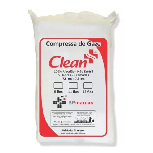 Compressa de Gaze Não Estéril 7,5x7,5cm 13 Fios - Clean