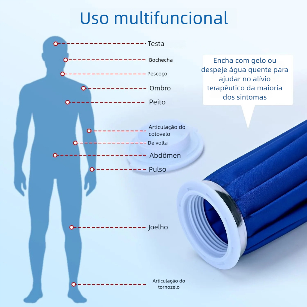 Bolsa Gelo Impermeável Flexível Compressa Ortopédica 15CM🔹 Modo de UsarColoque gelo na bolsa, cubra com uma toalha e aplique compressa fria na área afetada por 20–40 minutos ou seguindo instruções médicas. 🔹 O que é Crioterapia?Uso do frio para fins terapêuticos, também denominada terapia por frio. Indicada para inflamações, edemas, dores, espasmos musculares e auxílio em contrações musculares. Modalidades de aplicação: bolsas de gelo, imersão em água gelada, sprays esportivos. Duração: 20–40 minutos, conforme a lesão. 🔹 MaterialPoliéster + PVC ⚠️ ATENÇÃO: A cor do produto pode variar de acordo com a luz e brilho do monitor.