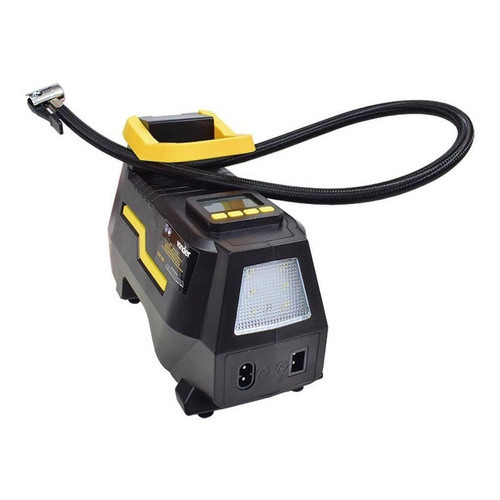 Indicado para encher pneus de carros, bicicletas, bolas, boias, entre outros objetos infláveis que necessitem de pressão máxima de 150 lbf/pol². Use em tomadas 12V DC ou, utilizando o cordão elétrico correto, pode ser usado em tomadas cuja tensão seja 127 V~ ou 220 V~ AC. Equipamento leve, prático, compacto e fácil de usar. Possui visor LCD com luz de fundo, controles digitais e iluminação auxiliar de LED. Conteúdo da Embalagem: 1 Compressor de ar 12 V ou 127 V~ a 220 V~ bivolt automático automotivo. Acompanha: 1 mangueira com bico para encher pneus, 1 bico para encher bola, 2 bicos para infláveis, 1 fusível de vidro 250 V, 1 cordão elétrico para tensão 12 V, 1 cordão elétrico para tensão 127V~/220V~. Detalhes Técnicos: Material da carcaça:Plástico Capacidade de produção de ar:22 L/min Pressão máxima de trabalho:150 lbf/pol² Potência:120 W Tensão (V):12 V - DC / 127 V~ a 220 V~ - Bivolt automático Rotação (rpm):16.000/min Comprimento da mangueira:0,60 m Comprimento do cordão elétrico de alimentação:Cordão 12 V: 2,8 m; Cordão 127V~/220 V~: 1,6 m Dimensões:205 mm x 100 mm x 155 mm Massa aproximada (peso):1.4 kg