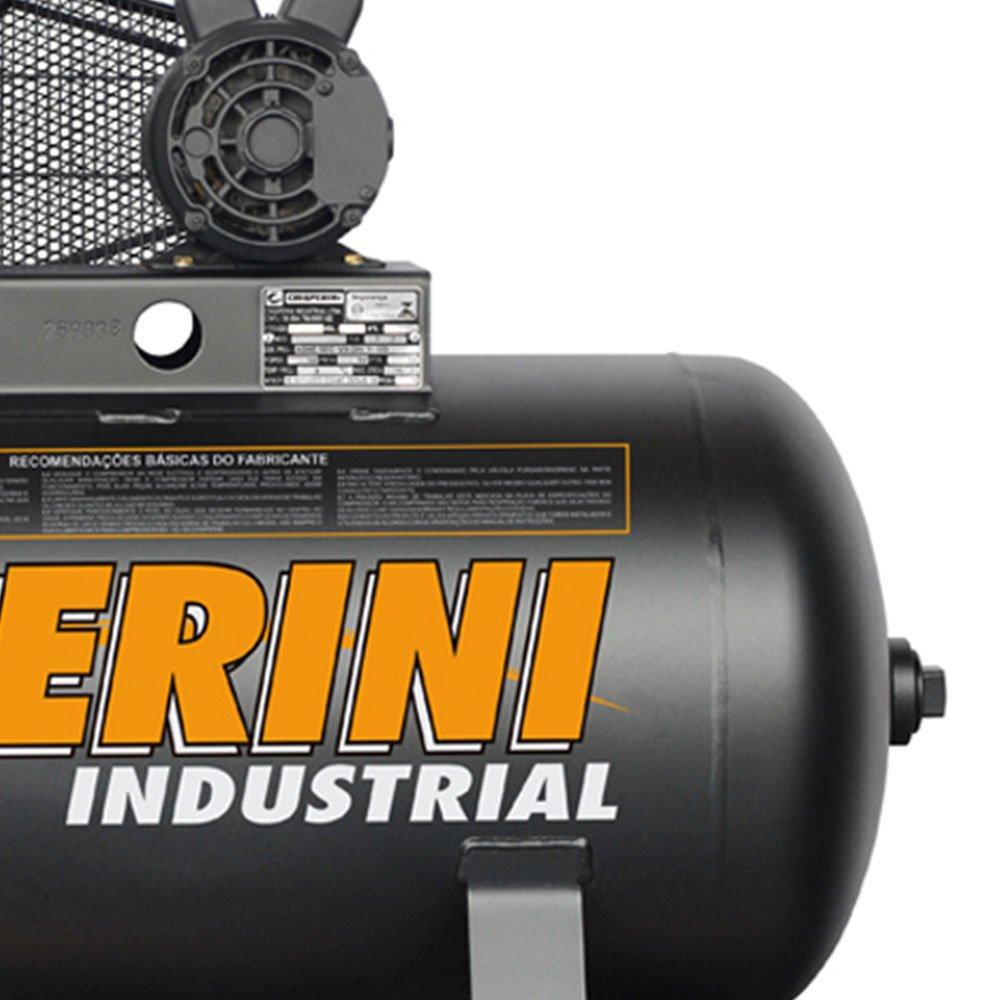 Compressor de ar alta pressão industrial oferece maior vazão de ar, mais silencioso, mais eficiência e durabilidade com ótimo custo-benefício. Possui 2 estágios e alta pressão (175lbf/pol), com design robusto e alta eficiência. É ideal para atividades de média e alta exigência em empresas como oficinas mecânicas, postos de serviços, marcenarias, serralherias e também em sítios, fazendas e etc. - Características: :: Pistão lubrificado :: Motor elétrico industrial :: Cabeçote de ferro fundido com sistema de trabalho em V :: Acionamento por correia :: Calibragem de pneus até 125 Lbs/pol - Especificações Técnicas: :: Deslocamento Teórico: 425 l/min 15 pcm :: Pressão Máxima: 175 psi 12 bar :: Reservatório: 200L :: Tempo de Enchimento: 08 min e 55 seg :: Número de Cilindros: 2 :: Número de Estágios: 2 :: RPM do Bloco: 1100 :: Motor Elétrico: 3hp 2,2kW 2P Monofásico :: Óleo Lubrificante Volume (ml): 600 :: Peso do Cabeçote: 32,5kg :: Diâmetro Polia: 100 :: Diâmetro do Volante: 320 mm :: Correia: A55 :: Peso com embalagem: 166,1kg :: Dimensões com embalagem: 1450 x 650 x 1210 mm - Garantia: 3 Meses para Unidade Compressora 1 Ano para Demais Componentes - Código de Barras: 7890534006783