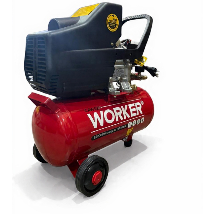 Compressor de Ar Worker 1.5HP 20 Litros – Potência, Durabilidade e Eficiência! O Compressor de Ar Worker CAW020 foi desenvolvido para quem busca desempenho, mobilidade e confiabilidade no dia a dia. Ideal para inflar pneus, acionar ferramentas pneumáticas leves, realizar pinturas, limpezas e diversos serviços profissionais ou domésticos. Com motor de 1.5HP, reservatório de 20 litros e pressão máxima de 8 Bar, ele entrega um fluxo de ar constante e eficiente, garantindo excelente produtividade. Disponível nas voltagens 127V ou 220V. Destaques do Produto Motor de 1.5HP – Alto desempenho para diversas aplicações Tanque de 20L – Armazena maior volume para mais autonomia Pressão de trabalho: 8 Bar Vazão de ar: 190 L/min Portátil, compacto e fácil de transportar Design robusto Worker – Qualidade reconhecida Disponível em 127V ou 220V Rodas reforçadas para movimentação simples Especificações Técnicas Modelo: CAW020 Marca: Worker Potência: 1.5 HP - 1100W Capacidade do Tanque: 20 Litros Pressão Máxima: 8 Bar Vazão: 190 L/min Tensão: 127V ou 220V Lubrificado a óleo: Sim Corrente: 12 A Vel. Rotação: 3400 rpm Deslocamento teórico: 6,6 PCM (190 L/min) Indicado para: pintura leve, limpeza, inflar pneus, uso geral Ideal para Oficinas Residências Borracharias Marcenarias Prestadores de serviços Garantia e Suporte Produto novo, lacrado, com garantia do fabricante e nota fiscal.