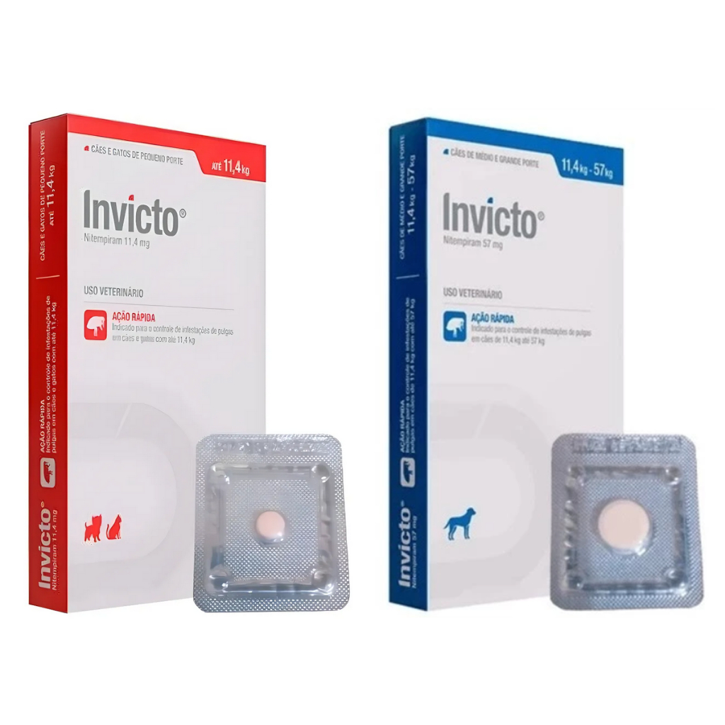 Comprimido para Pulgas e Carrapatos Invicto - Antipulgas Até 11,4kg (Cães e Gatos) / Até 57kg (Cães)