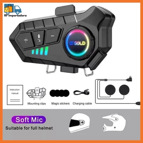 Comunicador Fone De Ouvido Bluetooth Sem Fio RGB À Prova D'água Para Capacete IPX6 A'gold