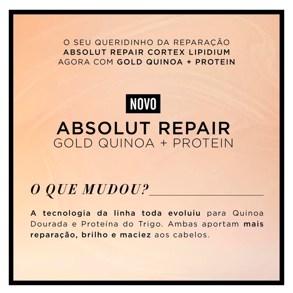 Você está comprando em uma loja Autorizada L'oréal Professionnel. Condicionador Absolut Repair Gold Quinoa + Protein L'oreal 1,5L Sobre o Produto: Condicionador indicado para cabelos danificados. Infundido com Gold Quinoa+ Proteína , a fórmula profissional do condicionador é o tratamento perfeito para resestruturar imediatamente os cabelos danificados. Sua Fómula nutre a fibra capilar, deixando-a com o toque leve e suave. Quinoa+Proteína: Em sua composição além de vitaminas E e do complexo B, conta com a proteina completa, que auxilia na profunda reestruturação da fibra danificada enquanto criam um filme que confere força e proteção aos fios, prevenindo de danos futuros. Proteína Hidrolisada do trigo: Sua função é ajudar a controlar a perda de hidratação dos fios, coferindo alta maciez, toque sedoso,além de criar um filme protetor que mantem as cultículas seladas, retendo assim as proprieades restauradoras dentro da fibra capilar. Co-Emulsão: Uma nova geração de moléculas,50x menores que as tradicionais. Os ativos penetram mais fundo na fibra atuando especialmente nas áreas mais danificadas. O resultado é um filme fino e Homogênio em toda a fibra capilar, que deixa os cabelos com o toque leve e suave. Modo de usar: Aplicar no cabelo molhado. Emulsionar. Enxaguar. Ingredientes: AQUA / WATER • SODIUM LAURETH SULFATE • COCAMIDOPROPYL BETAINE • DIMETHICONE • SODIUM CHLORIDE • CITRIC ACID • HEXYLENE GLYCOL • SODIUM BENZOATE • SODIUM HYDROXIDE • AMODIMETHICONE • CARBOMER • GUAR HYDROXYPROPYLTRIMONIUM CHLORIDE • TRIDECETH-10 • GLYCERIN • SALICYLIC ACID • GLYCOL DISTEARATE • LINALOOL • MICA • PEG-100 STEARATE • HEXYL CINNAMAL • PHENOXYETHANOL • STEARETH-6 • COCO-BETAINE • TRIDECETH-3 • CI 77891 / TITANIUM DIOXIDE • LIMONENE • CHENOPODIUM QUINOA SEED EXTRACT • ACETIC ACID • FUMARIC ACID • HYDROLYZED WHEAT PROTEIN • CI 19140 / YELLOW 5 • HYDROLYZED CORN PROTEIN • HYDROLYZED SOY PROTEIN • CI 17200 / RED 33 • PARFUM / FRAGRANCE Cuidados/Restrições: Evite o contato com os olhos. Caso isso aconteça, enxágue com água em abundância. Havendo irritação, suspender o uso e procurar orientação médica. Não ingerir. Manter fora do alcance de crianças. Uso externo.