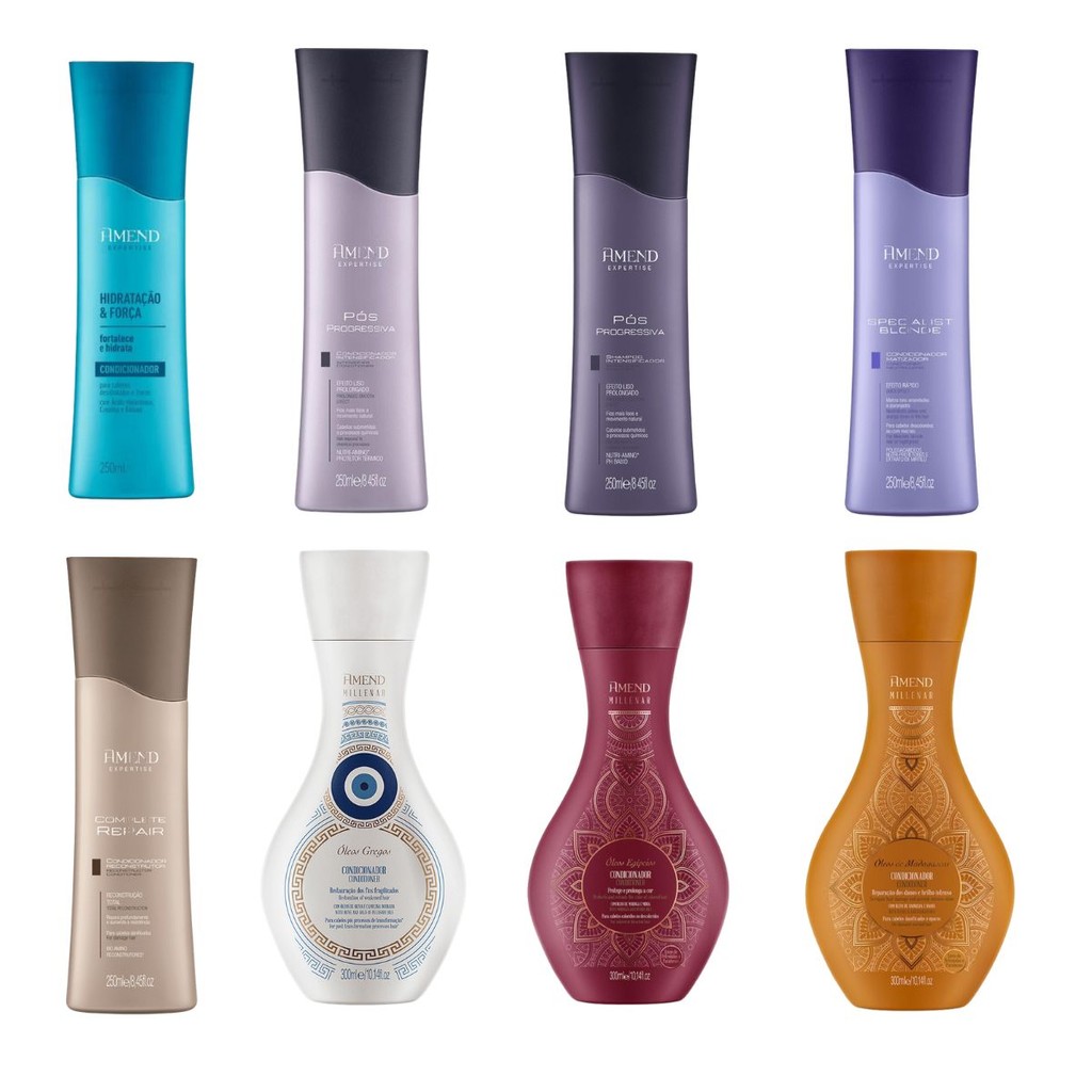 Condicionador Hidratante Fortalece Hialurônico Amend 250ml O Condicionador Amend Hidratação e Força fortalece cabelos desidratados e fracos com ácido hialurônico, creatina e biotina. Hidrata profundamente, suaviza as cutículas e devolve a maciez. A biotina acelera o crescimento, e a creatina repara danos e aumenta a resistência dos fios. Ideal para cabelos frágeis, promove hidratação, brilho e vitalidade com leveza. Condicionador Matizador Specialist Blonde Loiros Amend Neutralize tons amarelados com o Condicionador Matizador Amend Specialist Blonde. Sua fórmula antioxidante com extrato de mirtilo hidrata, fortalece e protege contra danos. Oferece efeito matizador imediato, deixando cabelos luminosos, macios, saudáveis e sem frizz. Ideal para loiros, grisalhos e descoloridos. Condicionador Reconstrutor Complete Repair Amend 250ml Recupere cabelos danificados com o Condicionador Amend Complete Repair. Com Bio-Amino Reconstrutores, fortalece e repara profundamente os fios. Proporciona maciez, hidratação intensa e redução do frizz, deixando os cabelos mais alinhados e brilhantes. Perfeito para fios frágeis e danificados. Condicionador Intensificador Liso Pós-Progressiva Amend O Condicionador Amend Pós-Progressiva prolonga o efeito liso e repara os fios com Nutri-Amino. Condiciona profundamente, reduz o frizz e garante brilho e maciez. Ideal para cabelos alisados ou opacos, sua fórmula termoativada protege contra o calor, deixando os fios saudáveis e alinhados. Condicionador Restauração e Hidratação Óleos Gregos Amend Inspirado na beleza grega, o Condicionador Amend Óleos Gregos combina óleos de oliva e camelina dourada para hidratar profundamente e reparar danos. Proporciona brilho, nutrição e proteção contra processos químicos. Fórmula livre de parabenos, dermatologicamente testada. Condicionador Prolonga Cor Millenar Óleos Egípcios Amend O Condicionador Amend Óleos Egípcios mantém a cor vibrante por mais tempo. Com óleos de moringa, mirra e girassol, protege contra desbotamento, condiciona intensamente e proporciona brilho, maciez e vitalidade. Ideal para cabelos tingidos, fortalece e hidrata profundamente. Condicionador Reparação e Brilho Óleos de Madagascar Amend O Condicionador Amend Óleos de Madagascar repara danos, nutre e fortalece os fios com óleos de baunilha e baobá. Sua fórmula com Full Repair Complex proporciona maciez, brilho e resistência. Ideal para cabelos danificados, oferece cuidado intenso e proteção duradoura.