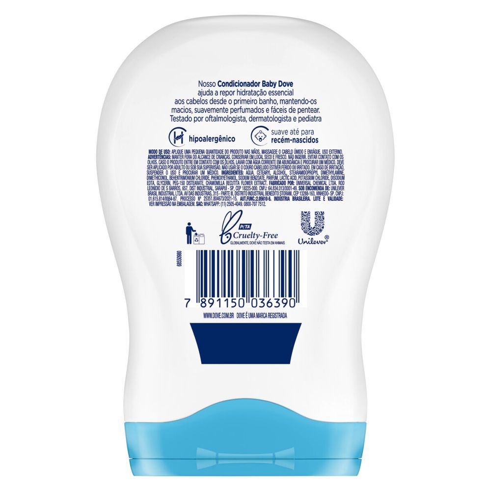 Condicionador Dove Baby Hidratação Enriquecida com 200ml Hipoalergênico. pH neutro para o cabelo do bebê. Sem lágrimas, corantes, parabenos, ftalatos, sulfatos. Suave até para recém-nascidos. Ajuda a