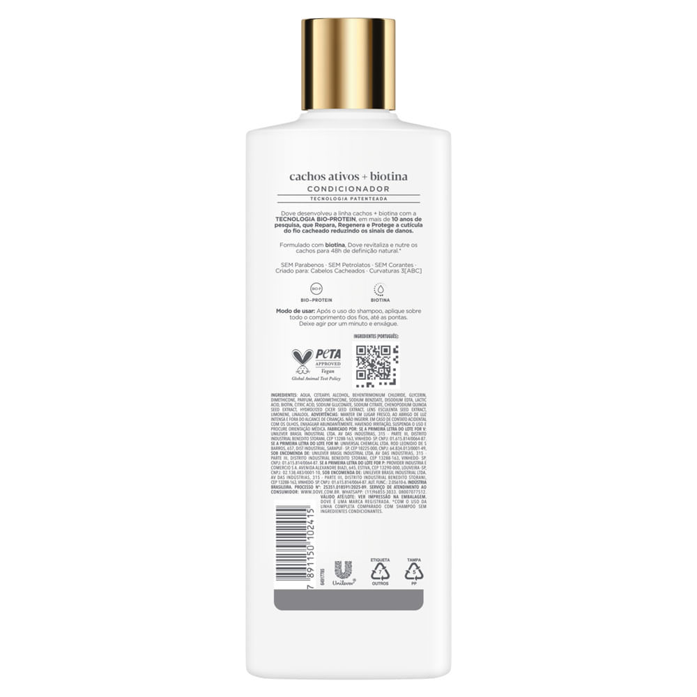 Condicionador Dove Cachos Ativos e Biotina Expert em Danos Cabelos 3A a 3C 370ml