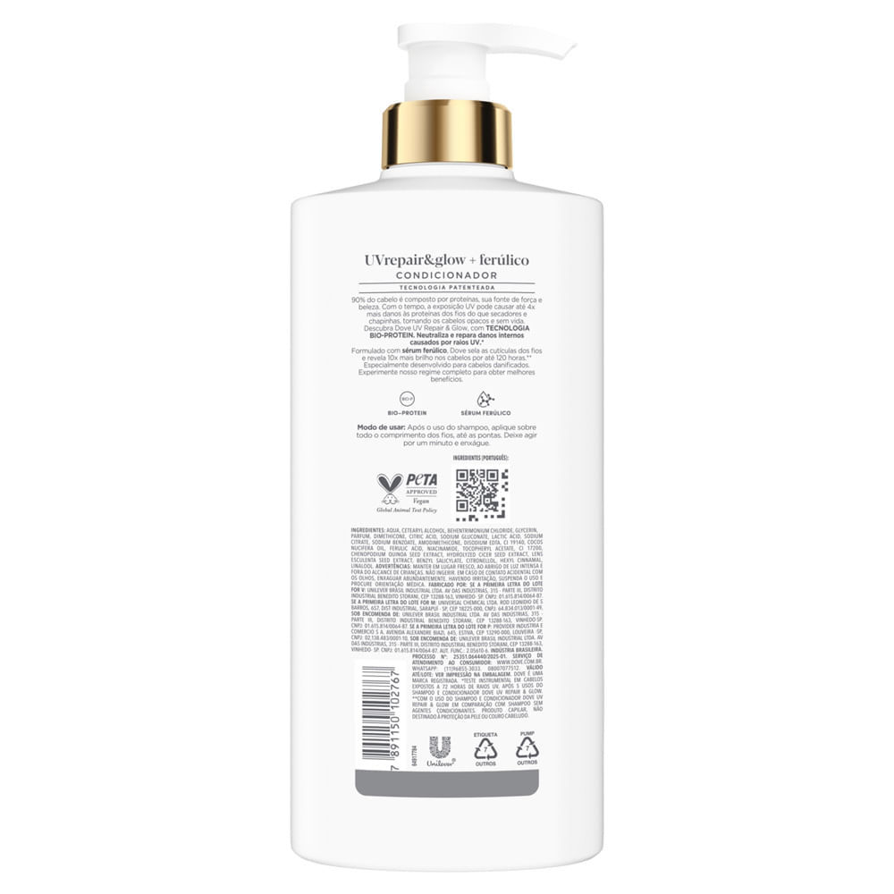 | Condicionador Dove UV Repair e Glow Ferúlico Expert em Danos 600ml este produto | R$ 54,59 | — | 4.9/5 | 3 |