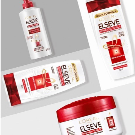 O Condicionador Elseve Reparação Total 5 - 200ml é indicado para cabelos danificados, proporciona restauração e reparação intensa. A linha Elsève Reparação total 5, com bio-ceramida, uma ceramida 100% compativel e de estrutura idêntica à ceramida natural dos cabelos. Isso faz com que a bio-ceramida repare e reforce toda a região danificada dos cabelos, da raiz às pontas e em seu nível intercelular, restaurando-os em sua totalidade. Benefícios: - Hidratação profunda; - Fortalece a fibra capilar; - Reparção intensa; - Recupera fios fracos e quebradiços. Modo de usar: Após lavar os cabelos com shampoo, aplique o condicionador de maneira uniforme no comprimento e ponta dos fios. Enxague bem. Sobre a marca: Há 40 anos, Elseve, de L´Oréal Paris, estuda, observa e entende com paixão o complexo universo dos cabelos. A marca mais inovadora do mundo em cuidado capilar traz o melhor da tecnologia e a expertise dos laboratórios de Paris para criar fórmulas de excelente qualidade, que atendam às diferentes necessidades das mulheres brasileiras. Desde a chegada da marca no Brasil, há 25 anos, Elseve busca as melhores fórmulas por meio de intensas pesquisas sobre os ingredientes e os hábitos das mulheres brasileiras com relação aos seus cabelos. Considerada a população com a maior diversidade capilar no mundo, o cabelo brasileiro virou fonte de conhecimento para os experts da França e o resultado desta simbiose é o 1° laboratório capilar L?Oréal da América Latina, localizado no Brasil. Esta unidade exclusiva tem como missão desenvolver as melhores fórmulas e lançar os produtos que mais se adequem às necessidades dos brasileiros e de seus cabelos. Exemplo recente deste trabalho foi o lançamento de Elseve Reparação Total 5, criado no Brasil e exportado para o resto do mundo. Além disso, novos segmentos e categorias também foram criados exclusivamente para o Brasil, como, por exemplo, o Leite para Pentear e o Creme Reparador Termo-Protetor.