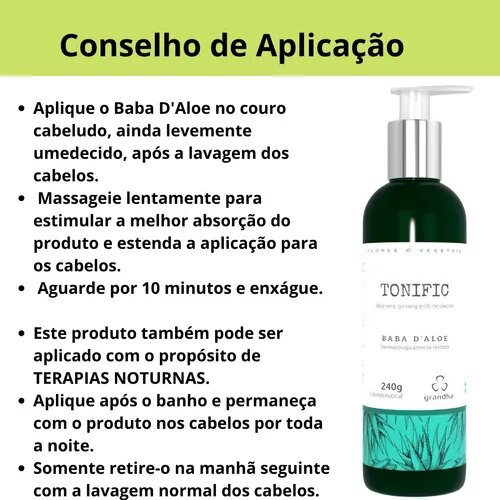 TONIFIC BABA D'ALOE Tonificação e fortalecimento dos cabelos. O Tonific Baba D'Aloe é especialmente utilizado na tonificação e fortalecimento dos cabelos. Ideal para ser usado em conjunto com o Kit Tonific Flores & Vegetais. O kit Tonific, da linha de terapia capilar, Flores e Vegetais, é a clássica associação dos extratos concentrados de aloe vera e ginseng, com um toque de óleo essencial de alecrim para tonificar e fortalecer os cabelos. A clássica associação dos extratos concentrados de aloe vera e ginseng com um toque de óleo essencial de alecrim para tonificar e fortalecer os cabelos. Conselho de aplicação: Aplique o condicionador Baba D'Aloe no couro cabeludo, ainda levemente umedecido, após a lavagem dos cabelos. Massageie lentamente para estimular a melhor absorção do produto e estenda a aplicação para os cabelos. Aguarde por 10 minutos e enxágue. Este produto também pode ser aplicado com o propósito de TERAPIAS NOTURNAS. Aplique após o banho e permaneça com o produto nos cabelos por toda a noite. Somente retire-o na manhã seguinte com a lavagem normal dos cabelos. Quem somos : A Locus é uma loja online, que oferece produtos nacionais e importados no Brasil. , temos orgulho desse sucesso e hoje conquistamos clientes em todo o Brasil, o resultado para nosso sucesso é simples, entregamos exatamente o que prometemos para atender todas as expectativas dos nossos clientes. Servir bem, para servir sempre. Obrigada!!!