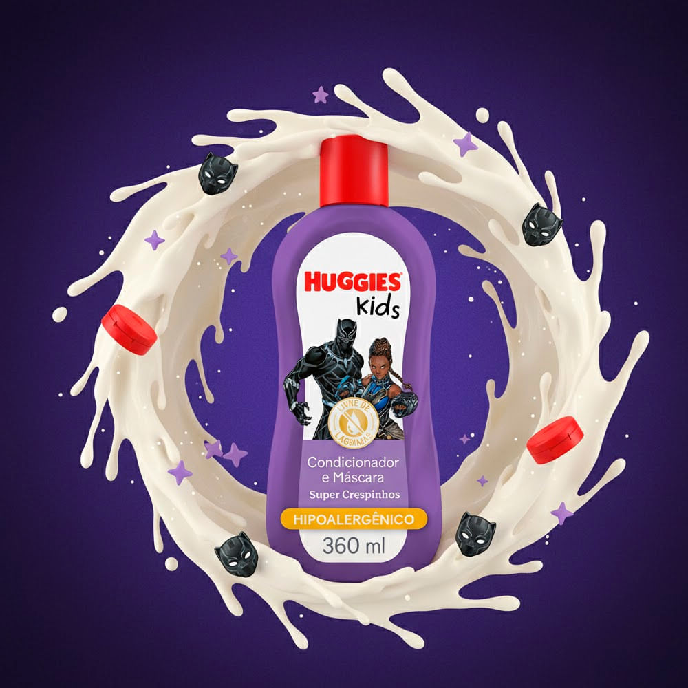 Huggies Kids Condicionador e Máscara Super Crespinho 360ml – 2 em 1 Livre de Lágrimas aranta nutrição profunda e facilite o desembaraço dos cachos do seu filho com o Huggies Kids Condicionador e Másca