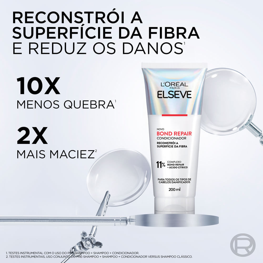 Condicionador L'Oréal Paris Elseve Bond Repair A linha Bond Repair de L’Oréal Paris contém em sua fórmula o Ácido Cítrico que age na camada mais profunda da fibra , o córtex, e recria as ligações capi