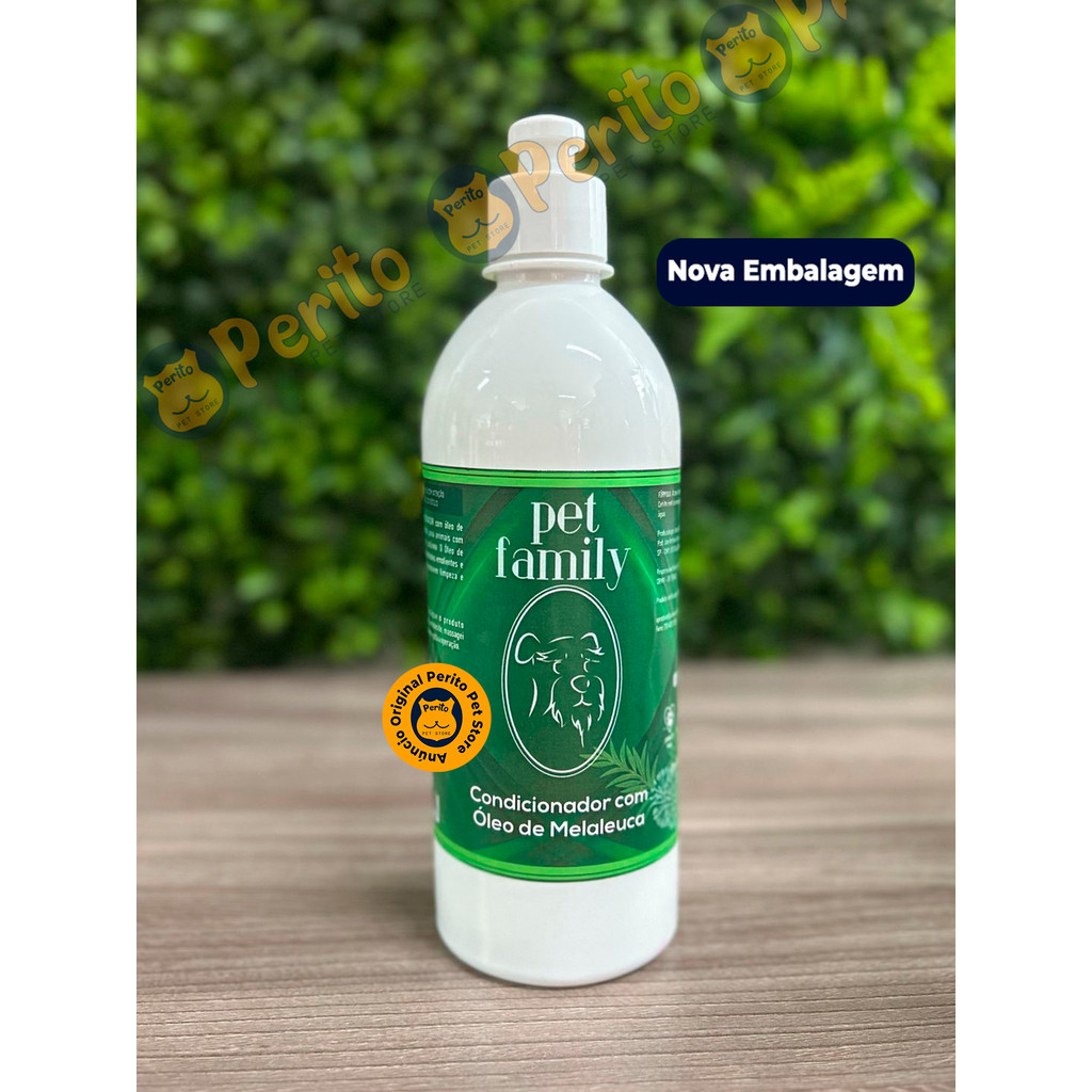 Pet Family Condicionador Com óleo de melaleuca é indicado para animais com hipersensibilidade cutânea. O óleo de melaleuca tem propriedades emolientes e antifungícas que promovem limpeza e maciez aos pelos Aplique o produto diretamente no pelo já umidecido, massageie e enxágue. Se necessário repita a operação. -Deixa os pelos mais macios e livres -Pelagem mais iluminada e saudável-Produto vegano-Livre de Sal-Paraben Free -Validade 24 meses após a fabricação (Validade NOV/25) Porduto Original