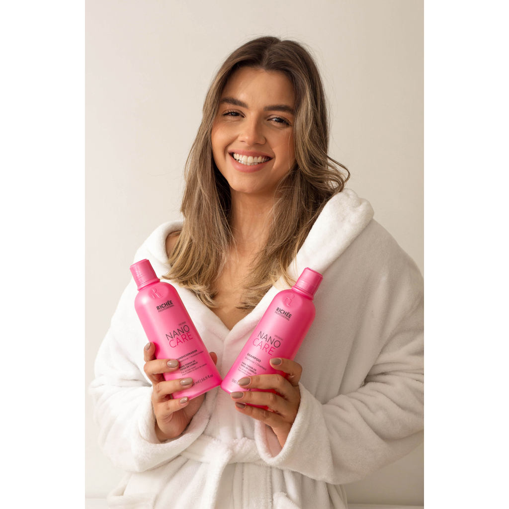 Richée Nano Care Repair Condicionador Reparador Diário 1L Resultado:Cabelos macios, sedosos, disciplinados, fáceis de pentear e com brilho natural. Descrição:A linha Nano Care é enriquecida com o luxuoso óleo de macadâmia que penetra profundamente nos fios, ajuda a hidratar e nutrir os cabelos de dentro para fora, deixando-os macios, sedosos, disciplinados, fáceis de pentear e com brilho natural. Diferenciais: Hidratação intensiva: o óleo de macadâmia é rico em ácidos graxos, como o ácido oleico, que penetram profundamente nos fios, ajudando a hidratar e nutrir os cabelos de dentro para fora. Especialmente benéfico para cabelos ressecados e danificados. - Proteção contra danos: as propriedades antioxidantes do óleo de macadâmia ajudam a proteger os cabelos contra os danos causados pelos radicais livres, como a poluição e os raios UV, ajudando a manter a saúde e a integridade dos fios. - Suavidade e brilho: ajuda a suavizar a cutícula capilar, proporcionando cabelos mais macios, sedosos e com brilho natural. - Redução do frizz: suas propriedades emolientes ajudam a selar as pontas duplas e a controlar o frizz, deixando os cabelos mais disciplinados e fáceis de pentear. - Estímulo ao crescimento: ajuda a promover o crescimento saudável dos cabelos, estimulando a circulação no couro cabeludo e fornecendo os nutrientes necessários para o desenvolvimento dos fios. Modo de Uso: Após lavar os cabelos com Richée Professional Nano Care Shampoo Reparador, aplique sobre cabelos úmidos quantidade suficiente de Richée Professional Nano Care Condicionador Reparador, massageando os fios suavemente. Deixe agir por alguns minutos e enxágue. Para um resultado mais efetivo, utilize a linha Nano Care: máscara. Composição:(ÁGUA, ÁLCOOL CETEARÍLICO, ÓLEO MINERAL, CLORETO DE CETRIMÔNIO, GLICEROL, AMODIMETICONA, TRIDECETE-12, PERFUME, CLORETO DE BEENTRIMÔNIO, ÓLEO DE MACADÂMIA, EDETATO DISSÓDICO, SALICILATO DE BENZILA, HEXIL CINAMAL, METILCLOROISOTIAZOLINONA, METILISOTIAZOLINONA)