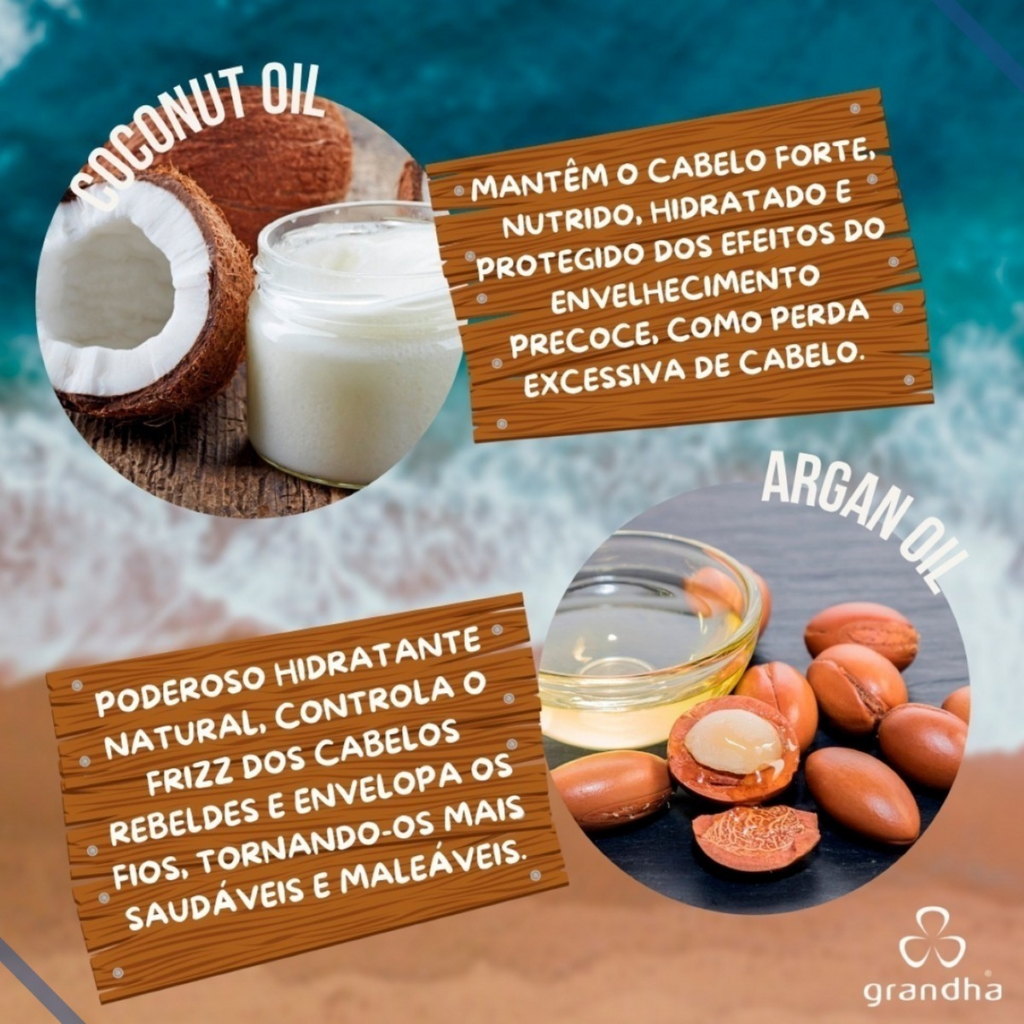 VERNIZ TEXTURE MIX OIL COCONUT & ARGAN Você está cansado de ter cabelos sem vida e sem brilho? Conheça Verniz Texture de Grandha! Esta máscara capilar hidratante tem ampla capacidade polinutritiva e doadora de brilho. A sinergia dos óleos de coco e argan estabelece maior potencial antioxidante, em função das altas taxas de vitamina E e ácidos graxos essenciais, os quais diminuem o desgaste provocado por processos químicos e restabelecem a integridade dos cabelos. Com Verniz Texture de Grandha, você pode ter controle hidrolipídico dos fios, além de brilho e sedosidade com ação antioxidante. A linha Mix Oil Coconut & Argan é ideal para o pós-praia ou piscina e também para cabelos fragilizados por processos químicos. O kit Mix Oil Coconut & Argan é rico em antioxidantes, pois conta com óleo de coco e óleo de argan em sua composição. Atua de forma a desacelerar o envelhecimento natural dos cabelos, proporcionando um brilho incrível, além do frescor do cheirinho de coco. Experimente Verniz Texture de Grandha e veja a diferença em seus cabelos! Não há contraindicações para o uso deste condicionador polinutritivo para reparação e polimento dos fios. Descubra como este produto pode ajudar a restabelecer a integridade dos seus cabelos e proporcionar um brilho incrível, tudo isso com o frescor do cheirinho de coco. Compre agora e transforme seus cabelos! MODO DE USO Aplique o condicionador Verniz Texture nos cabelos ainda úmidos e massageie-os mecha a mecha, até promover o completo desembaraço dos fios. Aguarde 5 minutos e enxágue. INFORMAÇÕES IMPORTANTES Não testado em animais. Condicionador polinutritivo para reparação e polimento dos fios. Ideal para o pós-praia e pós-piscina. Com óleos de coco e argan.