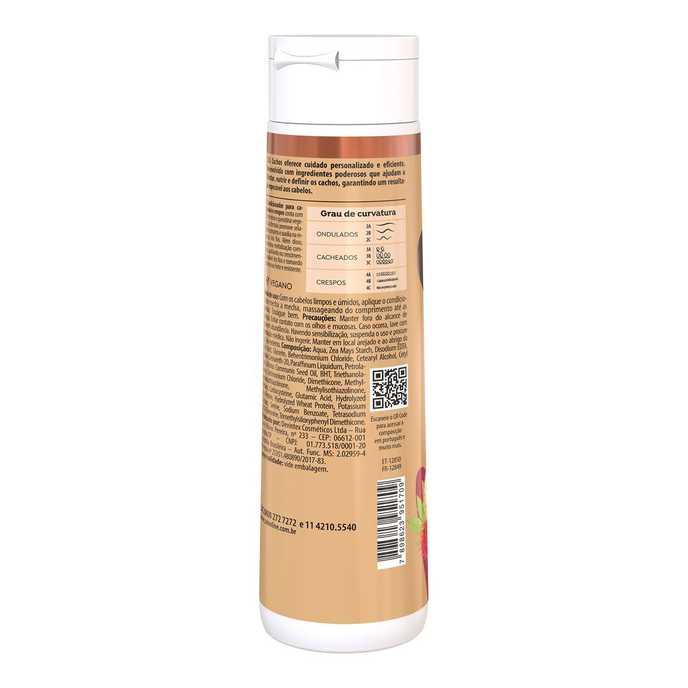 O Condicionador Rícino E Queratina Salon Line SOS Cachos Reparação Extrema proporciona uma hidratação profunda que irá restaurar seus cabelos da raiz até as pontas. Sua poderosa fórmula foi desenvolvida com Óleo de Rícino que é rico em ácidos graxos, vitaminas e sais minerais, possui propriedades que restauram e hidratam os fios, além de cuidar para um couro cabeludo saudável. E Queratina que é excelente para uma reconstrução capilar profunda, devolvendo os nutrientes que o cabelo perde ao longo do tempo. O Condicionador promove uma reconstrução profunda e agirá principalmente nutrindo e selando a estrutura dos fios e proporcionando maciez e brilho para os seus cachos. Benefícios: - Nutrição; - Reconstrução; - Brilho extremo.; - Hidratação. Modo de usar: Com os cabelos limpos e úmidos, aplique o Condicionador Rícino E Queratina SOS Cachos mecha por mecha no comprimento e pontas, massageando suavemente no sentido da raiz até as pontas. Deixe agir de 1 a 3 minutos e enxágue. Para melhores resultados, use a linha completa Rícino e Queratina Reparação Extrema 5 em 1 S.O.S Cachos. Sobre a marca: A Salon Line, uma das maiores fabricantes de cosméticos do Brasil, há mais de 15 anos acompanha a evolução da mulher brasileira. Toda essa vivência fez da empresa uma profunda conhecedora do universo feminino. A empresa está sempre investindo em novas tecnologias e produtos, para oferecer aos clientes, consumidores e profissionais da área o que há de melhor no segmento cosmético mundial. Empresa 100% Nacional, que tem como objetivo especializar-se na beleza das mulheres brasileiras. Sempre desenvolvendo produtos de alta tecnologia, a Salon Line faz do seu slogan a sua realidade: Valorizando todas as belezas.