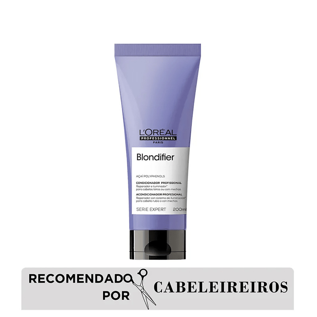 Você está comprando em uma loja Autorizada L'oréal Professionnel. Serie Expert Blondifier Condicionador 200ml-L'oréal-Professionnel Sobre o Produto: Condicionador de tratamento para cabelos loiros ou descoloridos. Sua fórmula nutre e suaviza o cabelo danificado. Cabelos loiros com brilho multidimensional, tratados, macios, suaves e mais fáceis de pentear. Enriquecido com polifenóis presentes no extrato de açaí. Ideal para cabelos com mechas também. Açaí Polyphenols: Extrato de açaí contando polifenóis. Esse componente é um antioxidante que impede o desgaste dos fios com o tempo, além de nutrir e reparar áreas danificadas pela coloração. Modo de usar: Com os cabelos ainda úmidos, aplique uma pequena quantidade do Condicionador Blondifier, e espalhe mecha a mecha delicadamente. Deixe agir por 3 minutos e enxague abundantemente. Ingredientes: AQUA / WATER • CETEARYL ALCOHOL • BEHENTRIMONIUM CHLORIDE • CETYL ESTERS • COCOS NUCIFERA OIL/COCONUT OIL • ISOPROPYL ALCOHOL • BENZOIC ACID • PENTAERYTHRITYL TETRA-DI-T-BUTYL HYDROXYHYDROCINNAMATE • BENZYL SALICYLATE • BENZYL ALCOHOL • LINALOOL • LIMONENE • SODIUM HYDROXIDE • HYDROXYCITRONELLAL • CITRONELLOL • 2-OLEAMIDO-1,3-OCTADECANEDIOL • TOCOPHEROL • ALPHA-ISOMETHYL IONONE • EUTERPE OLERACEA FRUIT EXTRACT • MALTODEXTRIN • PARFUM / FRAGRANCE Cuidados/Restrições: Evite o contato com os olhos. Caso isso aconteça, enxágue com água em abundância. Havendo irritação, suspender o uso e procurar orientação médica. Não ingerir. Manter fora do alcance de crianças. Uso externo.