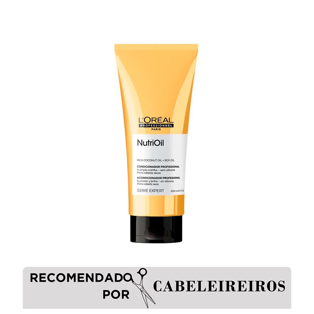 Você está comprando em uma loja Autorizada L'oréal Professionnel. Condicionador Serie Expert NutriOil 200ml-L'oréal Sobre o Produto:O condicionador NutriOil de L'Oréal Professionnel é a solução ideal para cabelos mais nutridos e com muito mais brilho. Ideal para complementar sua etapa de nutrição no cronograma capilar. Sua fórmula profissional é enriquecida com óleo de coco e óleo de soja em uma textura leve que confere a dose certa de nutrição. Com NutriOil, os cabelos se transformam instantaneamente: 4x mais nutridos*, 48h mais macios* e com muito mais brilho. óleo de Coco: O óleo de coco tem ação umectante, que adere ao fio formando uma camada protetora na superfície. Além de penetrar na fibra, fortalecendo a sua resistência e promovendo nutrição com maciez, brilho e movimento. Óleo de Soja: O óleo de soja é um ingrediente que promove força e proteção capilar, trazendo de volta a vida cabelos fracos e quebradiços. Seu uso contínuo reduz a porosidade dos fios tornando o cabelo mais forte e mais fácil de desembaraçar. Tipo de cabelo: Cabelos ressecados e sem brilho Resultados: Nutrição do fio, Brilho, maciez,desembaraço Modo de usar: Aplique no cabelo lavado e úmido. Passe no comprimento e pontas. Deixe agir por alguns instantes. Enxágue bem. O resultado é um cabelo hidratado e nutrido sem pesar.