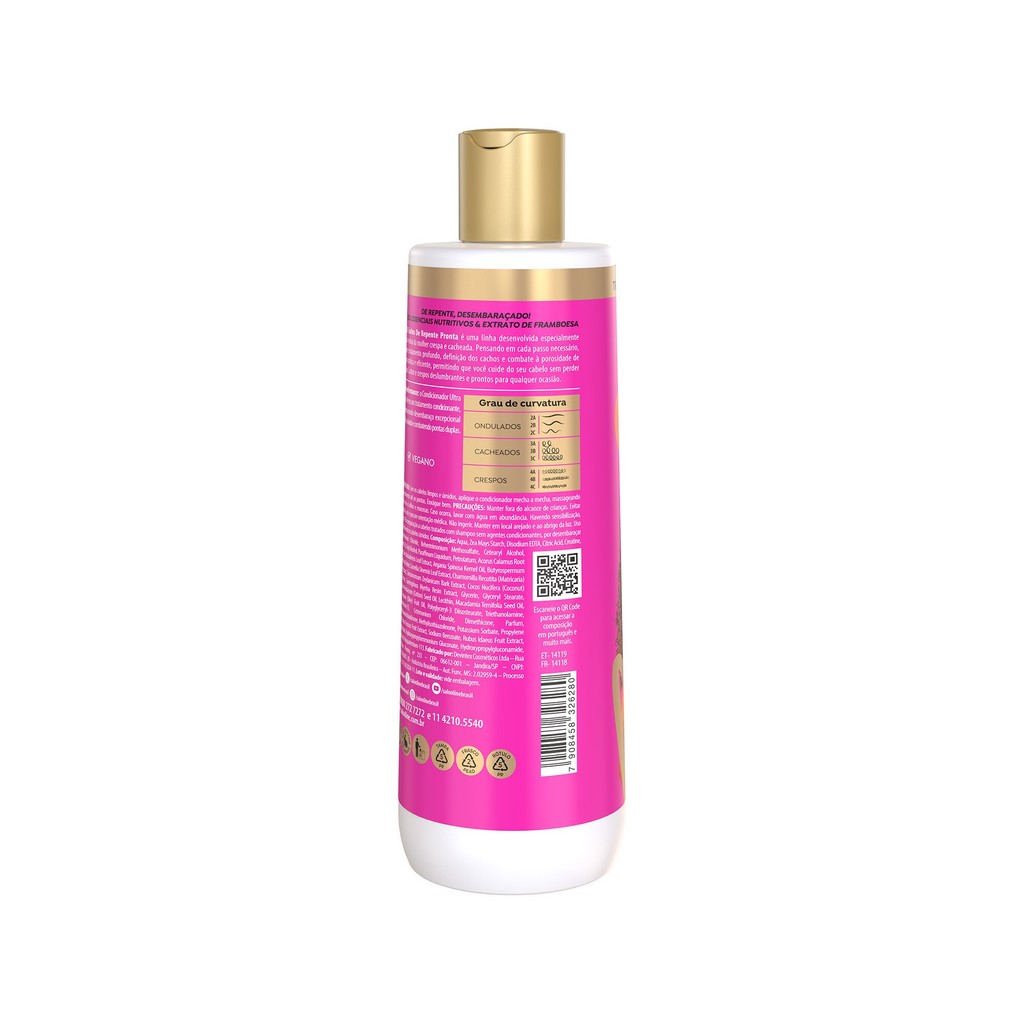 O Condicionador Ultra Gloss S.O.S Cachos De Repente Pronta! oferece um tratamento condicionante que proporciona 8x mais desembaraço, selamento dos fios, maciez profunda e brilho intenso, além de combater as pontas duplas. <>INDICAÇÕES$& Para quais tipos de cabelo? Cabelos cacheados e crespos. Qual a indicação? Cabelos porosos e sem brilho. Pode usar a partir de quantos anos? A partir de 12 anos. <>ATIVOS$& Quais os principais ativos? Sua fórmula é enriquecida com óleos essenciais nutritivos e extrato de framboesa. <>MODO DE USO$& Qual a melhor forma de usar? Com os cabelos limpos e úmidos, aplique o condicionador mecha a mecha, massageando do comprimento às pontas. Enxágue bem. <>CARACTERÍSTICAS$& É produto vegano? O Condicionador Ultra Gloss S.O.S Cachos De Repente Pronta! é vegano. É liberado? O Condicionador Ultra Gloss S.O.S Cachos De Repente Pronta! não é liberado.