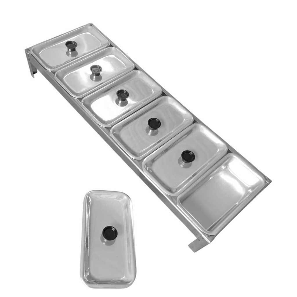 CONDIMENTADORA INCLINADA 6 CUBAS + TAMPAS INDIVIDUAIS