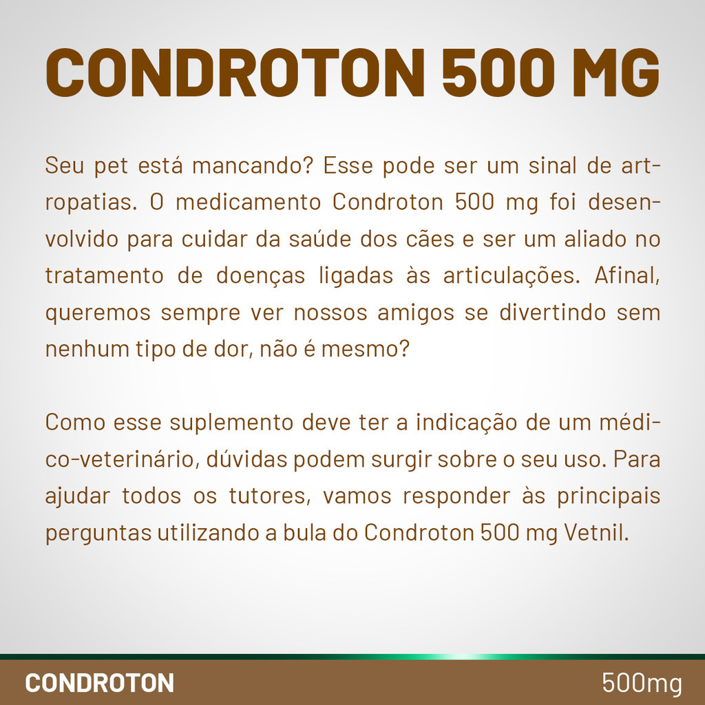 Condroton 500mg Regenerador Articular Vetnil 60 Comprimidos