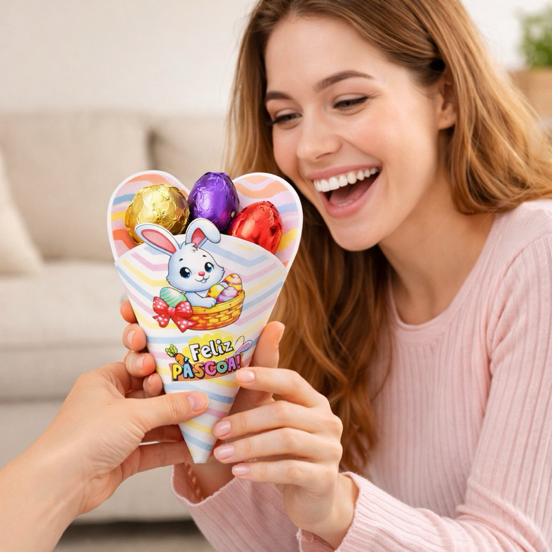 | Cone Buque Porta Bombom Páscoa | Lembrancinha Mimo Páscoa | Embalag... este produto | R$ 42,00 | 40% | 5.0/5 | — |