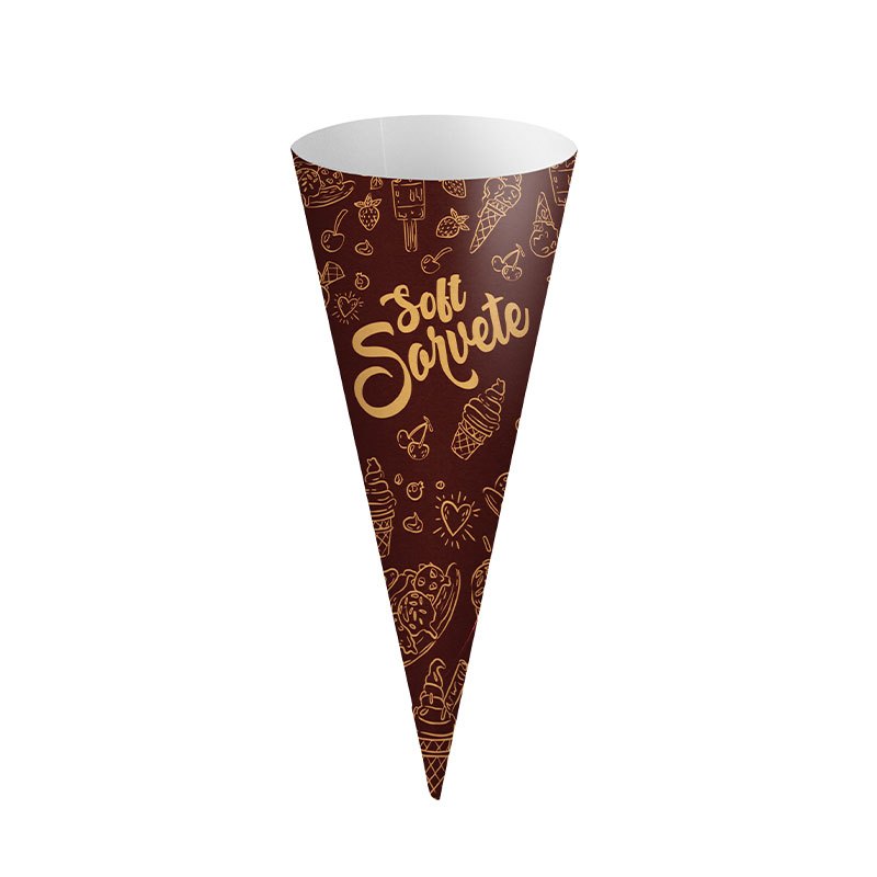 Cone de papel para casquinha de sorvete – caixa com 500 unidades. >>> Este anúncio/produto não permite personalização <<< >>> Não alteramos cor, fonte ou elementos gráficos da estampa deste anúncio <<< >>> ESPECIFICAÇÕES DO PRODUTO <<< - Medidas do cone montado: diâmetro da boca de 40 mm e comprimento do cone de 97 mm. - Quantidade de cones: 500 cones. - Papel: sulfite/offset 90 g. - Impresso em 4x0 cores (CMYK). - Montado e colado em processo automatizado (máquina). - Tipo de impressão: digital/offset. Os cones de papel (luvinhas) para casquinha de sorvete soft da Iscool são produzidos dentro dos mais altos padrões de higiene e qualidade recomendados pela ANVISA, sendo excelentes para substituir o guardanapo de papel que envolve a casquinha. Além de agilizar o atendimento, conferem um estilo diferenciado ao seu produto. Nossos cones já vão colados (montados), prontos para uso, encaixando-se nas casquinhas conforme as fotos do anúncio. Possuímos laudo de migração (embalagem com contato com alimentos) aprovado dentro dos padrões da ANVISA. A Iscool é fabricante, por isso garantimos qualidade e ótimo preço. A arte é igual à que está anunciada, e temos mais modelos à sua escolha (você pode visualizá-los nas variações do produto). Produzimos cones de papel personalizados com a sua arte ou marca. Você pode nos solicitar o link do anúncio por meio do campo de perguntas, e enviaremos a você. Há mais de 30 anos, produzimos cones de papel, agendas, cadernos e produtos de papelaria, garantindo qualidade e excelência. >>> INFORMAÇÕES DIVERSAS <<< - Leia atentamente a descrição do produto. - Caso tenha dúvidas relacionadas ao produto, faça quantas perguntas achar necessário antes da compra. - Confira seus dados de entrega (endereço completo, telefone para contato etc.). Não nos responsabilizamos por endereços incorretos ou dados incompletos. - Após a compra, se sentir necessidade de falar conosco, entre em contato por meio do chat (mensagens). - Valores sujeitos a alterações sem aviso prévio. Garantimos o valor apenas após a compra realizada.