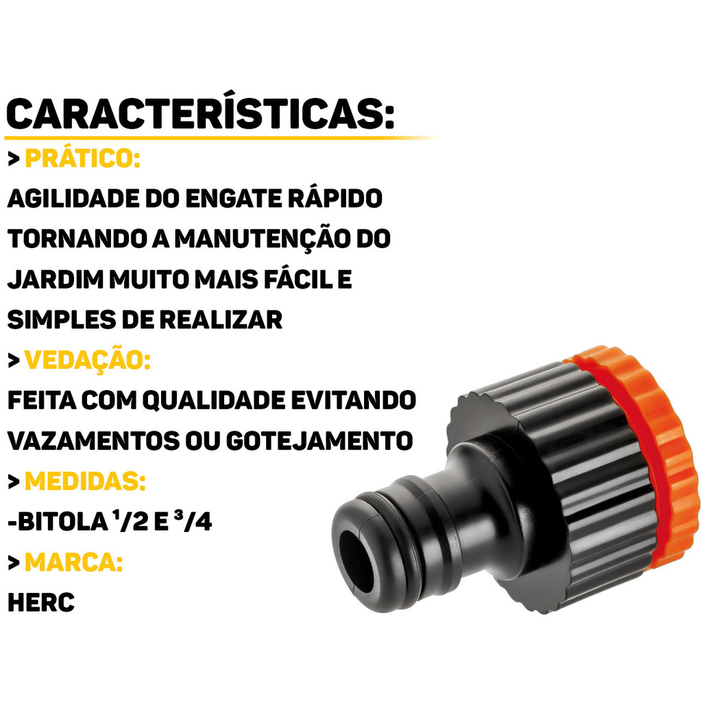 Conector Adaptador Universal Para Torneira Jardim Mangueira Engate Rápido 1/2 E 3/4 Herc