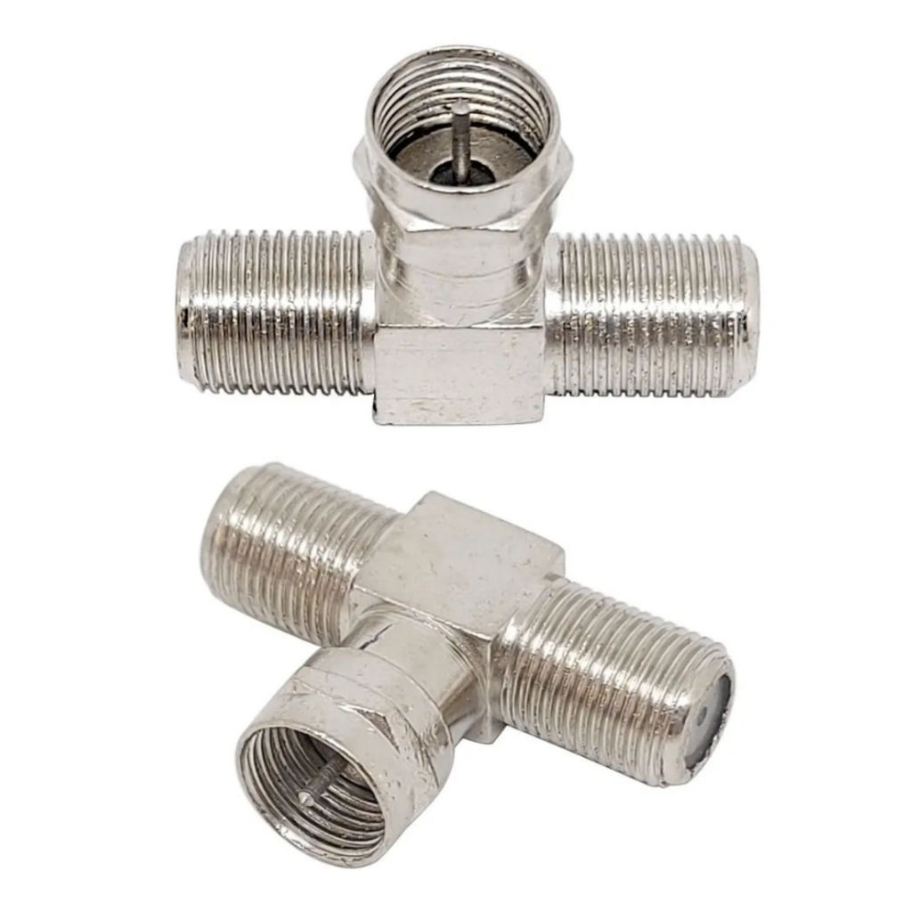 Conector F / Coaxial Tipo T 1 Macho Rosca X 2 Fêmeas Rosca