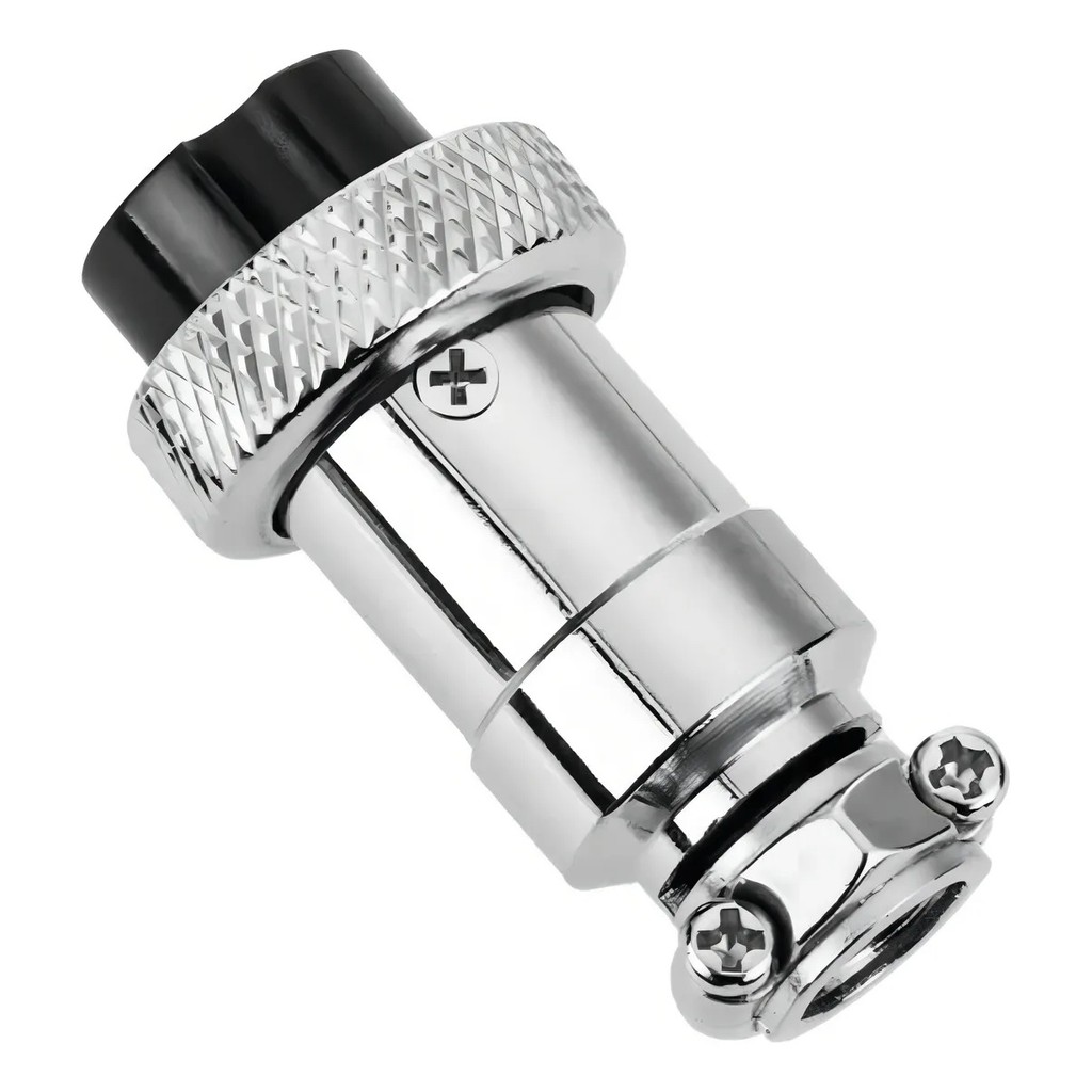CONECTOR MIKE 4 VIAS MACHO / FÊMEA (PAR) Este conector GX16, com 3 vias, é projetado para oferecer uma conexão segura e confiável, suportando uma corrente de até 7A.