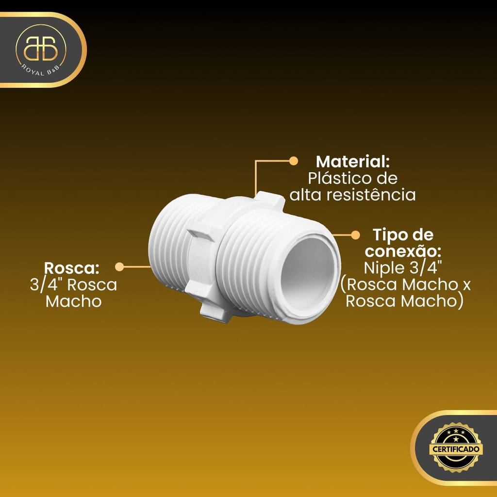 Royal B&B oferece atendimento personalizado e despacho em até 24 horas úteis para todo o Brasil. Trabalhamos com estoque real, garantindo pronta entrega, nota fiscal e segurança na sua compra. Com mais de 38 anos de experiência, somos sinônimo de eficiência e confiança. Além disso, contamos com entregas Flex de segunda a sábado. Pedidos na opção Flex realizados até 12:00 são entregues no mesmo dia, garantindo ainda mais rapidez e comodidade para você." Produtos: Conector Niple Conector Niple 3/4" Modelo: N34 Material: plástico Tamanho: Grau de Filtração (µm): Não se aplica Vazão Máxima: não se aplica Pressão Máxima: não se aplica Temperatura Máxima: não se aplica Função: conexão Substâncias Removidas: Não se aplica Redução de Cloro Livre: Não Eficiência Microbiológica: Não Compatibilidade: não se aplica Vida Útil: não se aplica Instalação: Fácil e Prática, sem necessidade de ferramentas específicas Garantia: 90 dias contra defeitos de fabricação Observações: Verifique as informações contidas no anúncio antes de efetuar sua compra. Caso ainda tenha alguma dúvida, não hesite em nos procurar pelo Chat para saná-la antes de efetivar sua compra. Atenção: - Todos os nossos produtos são novos e com garantia - Em caso de retirada, verifique previamente horário de disponibilidade - Inconvenientes de entrega devem-se ao próprio Marketplace, pois trabalhamos com as modalidades de Coleta/Fullfillment - Garantias só serão aceitas mediante envio de laudo prévio - Troca de produtos serão possíveis apenas com a embalagem original do produto A Royal B&B recomenda a instalação dos produtos por um profissional qualificado e não se responsabiliza por quaisquer danos causados pelo mau uso do produto.