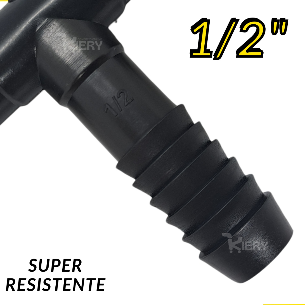 União Interna de 1/2 Polegada Tê Para mangueiras flexíveis e tubos de polietileno. As conexões são indicadas para aplicações em jardinagem, aviários, tanques de reservatório de água e estruturas rurais que não necessitam de alta pressão. Este produto é específico para aplicação em baixa pressão, não podendo ser embutido em paredes de concreto, deve ser aplicado externamente ou enterrado, livre, sem abraçadeiras. Kit com 25 Unidades, Comprimento 8cm Para mangueiras e tubos de polietileno com diâmetro de 1/2 Polegada CARACTERÍSTICAS Produzido em PP (Polipropileno). Instalação através de simples encaixe por travamento por espigão, dispensa o uso de ferramentas. Não utilizar lubrificantes nas conexões. KIERY, O QUE VOCÊ PRECISA!